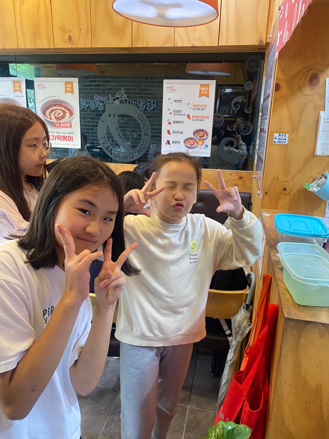 아이들이 담아오고 싶은 음식으로 떡볶이와 치킨을 정했습니다. 두 팀으로 나누어 진행하기로 했습니다. 가능여부와 조리시간을 고려하기 위해 치킨팀은 사전 연락을 드려보기로 했습니다. 떡볶이 팀은 직접 가서 바로 여쭤보기로 했습니다.