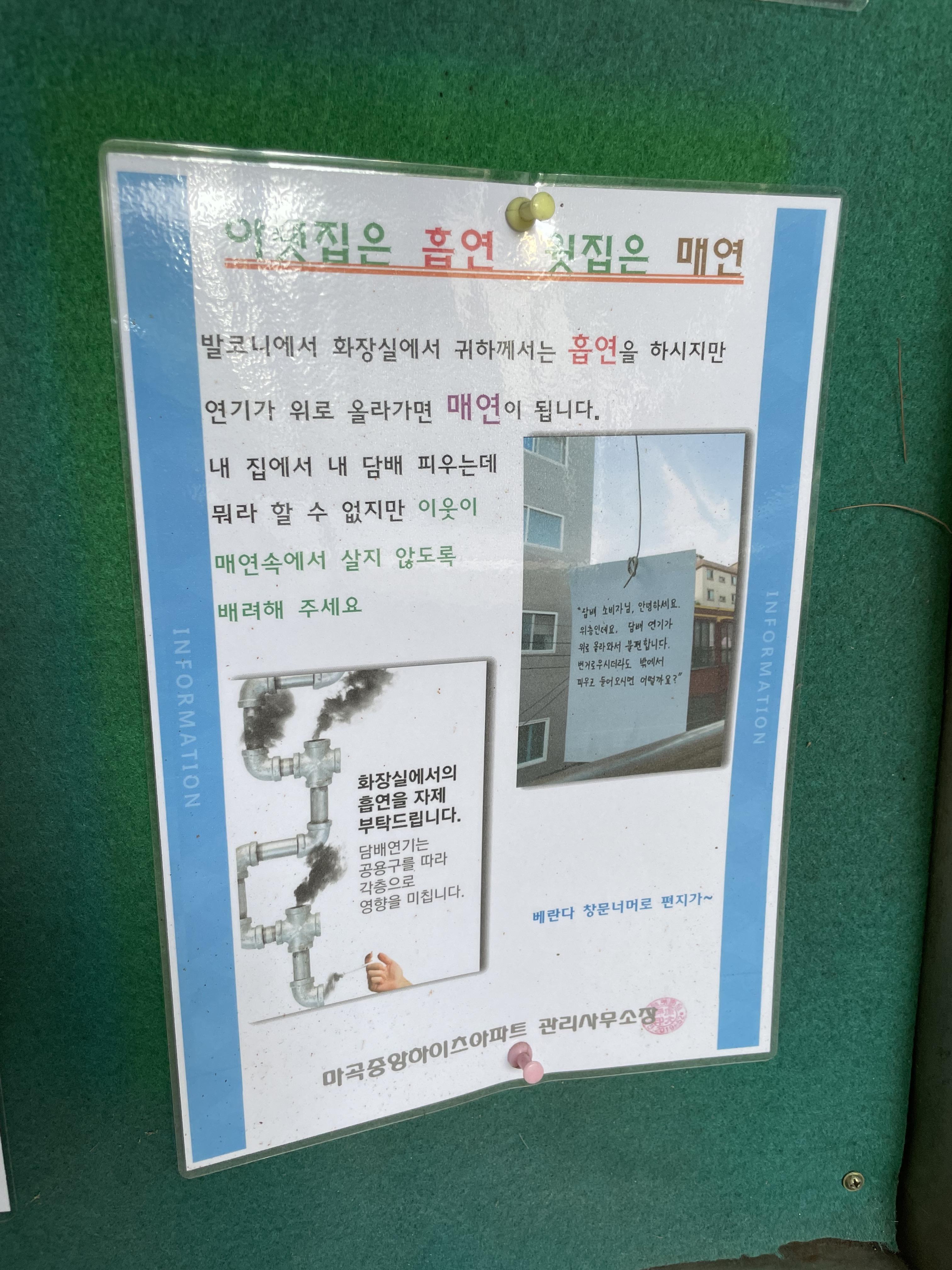 마곡중앙하이츠아파트에는 각 동 1층 '게시판'이라는 좋은 소통 창구가 있습니다.