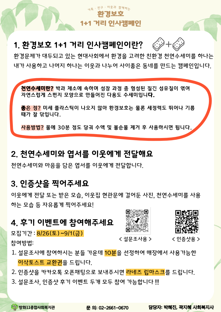 [동네로 사업] 가족, 친구, 이웃과 함께하는 환경보호 1+1 거리 인사캠페인