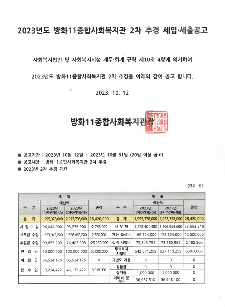 2023년 2차 추경 공고