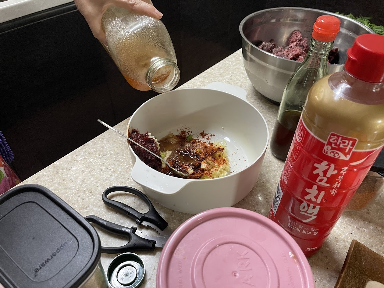 잔치 당일입니다. 통장님을 도와 잔치를 준비하기 위해 최예지 선생님과 함께 이른 아침 통장님 댁으로 향했습니다. 통장님께서 이웃분들을 위해 미역국, 각종 반찬, 소불고기를 준비하고 계셨습니다. 통장님께서 당신 댁에 있는 여러 양념들을 내어주시며 음식을 맛있게 만들어주셨습니다. 저와 최예지 선생님은 통장님을 도와 재료를 다듬으며 음식을 준비했습니다.