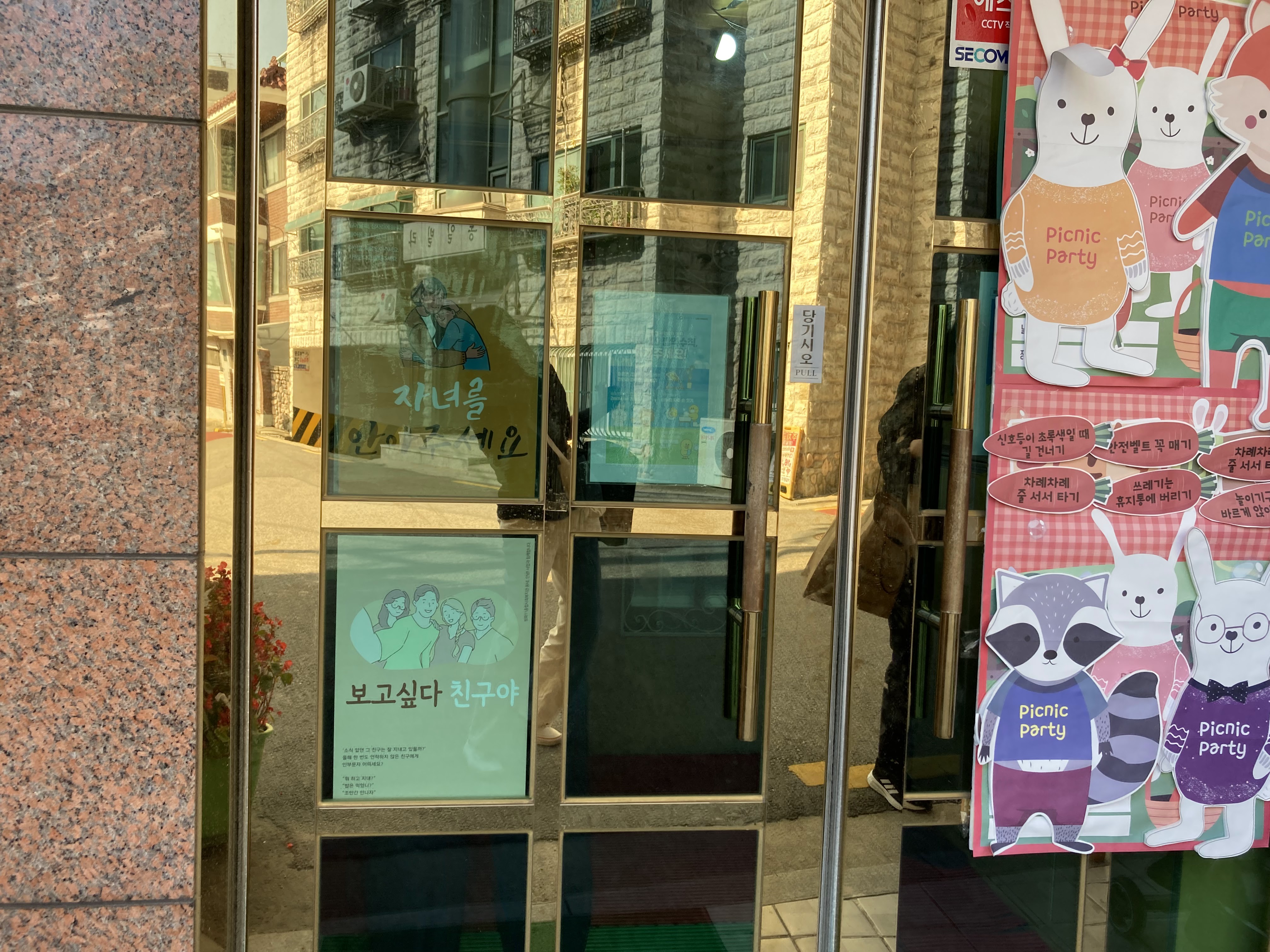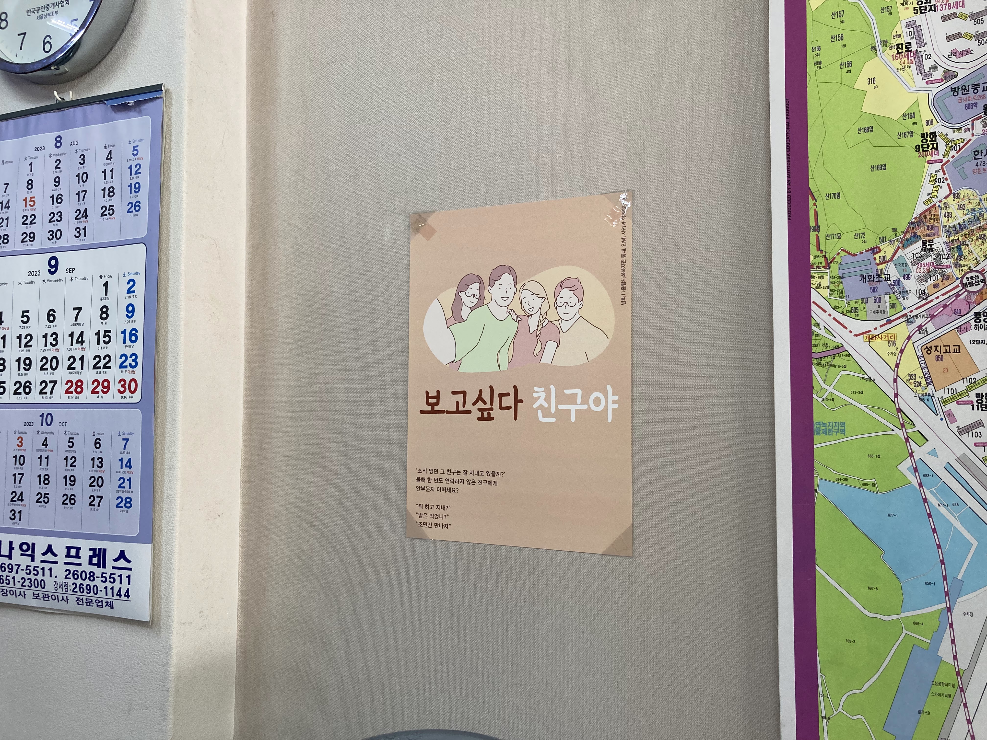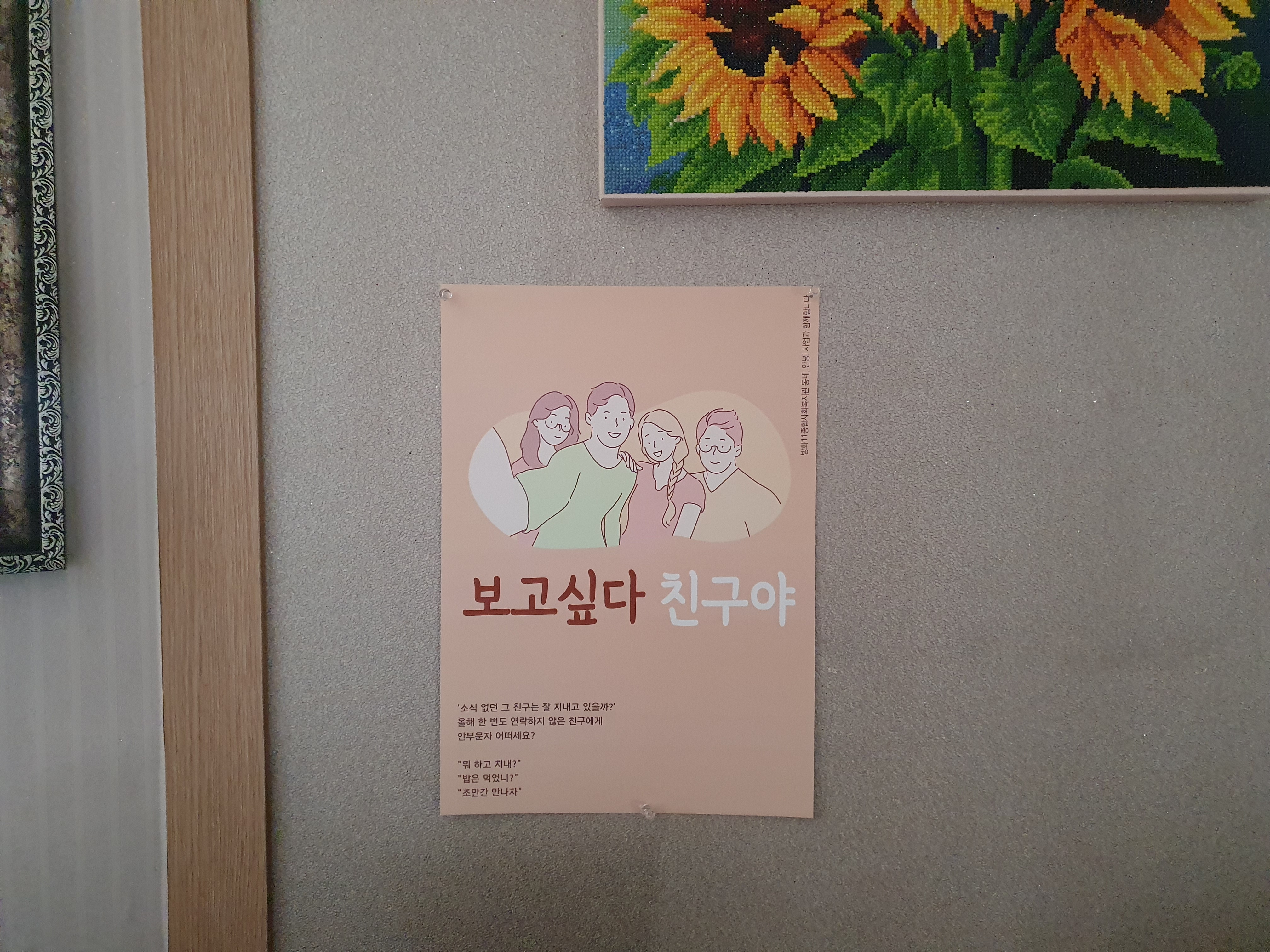 “ 사장님 안녕하세요, 복지관에서 왔어요. 새로운 포스터로 교체하고 가겠습니다”