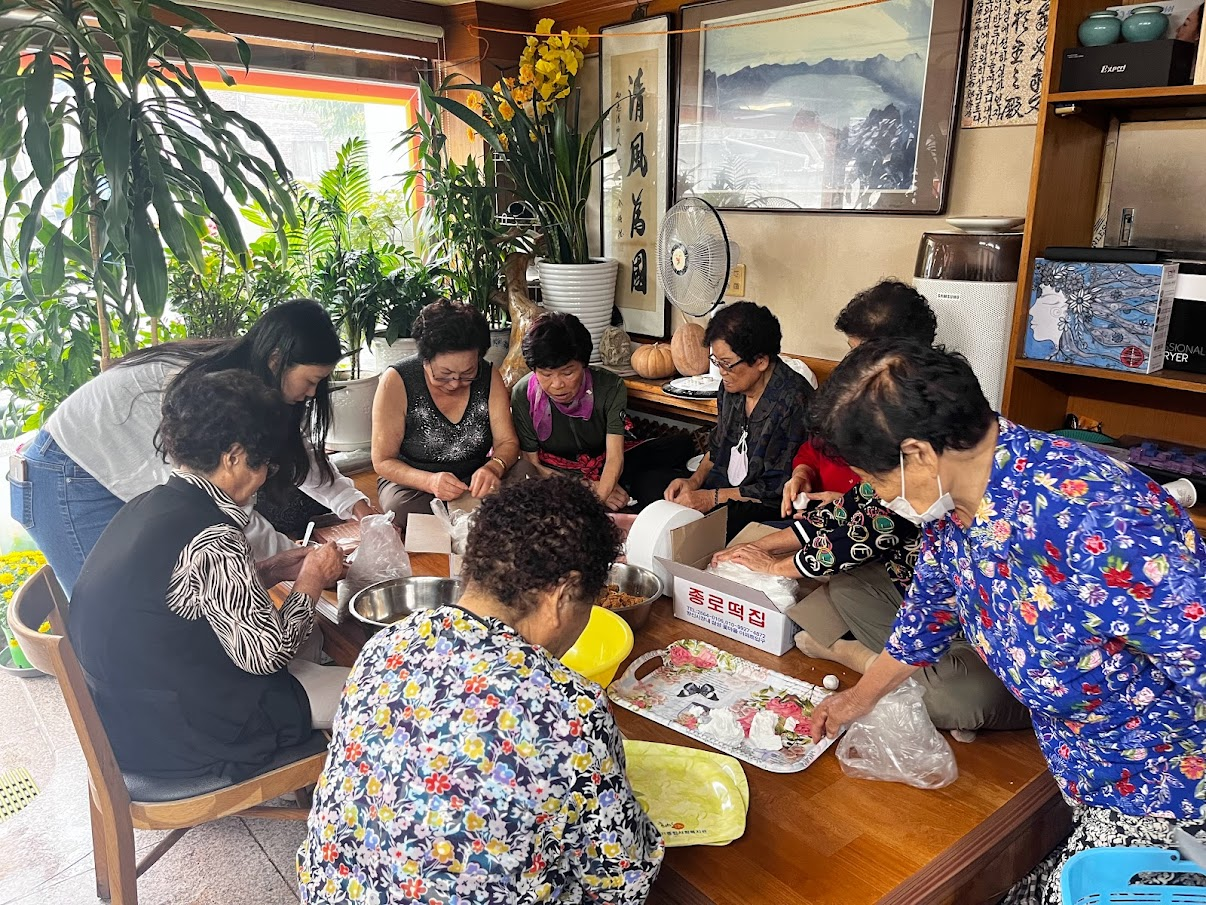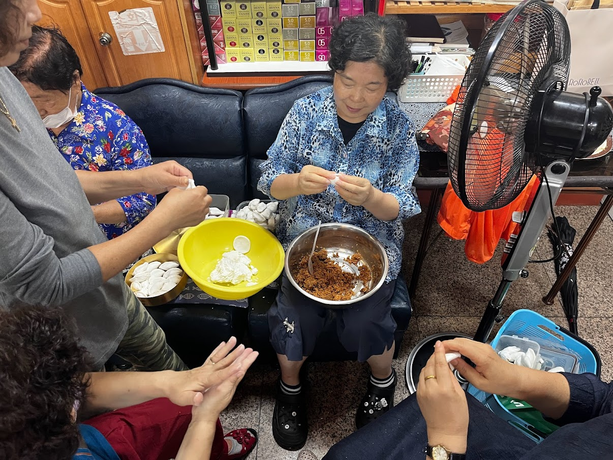 "같은 동네 사는 사람들끼리 함께 모여서 송편을 만들다니
