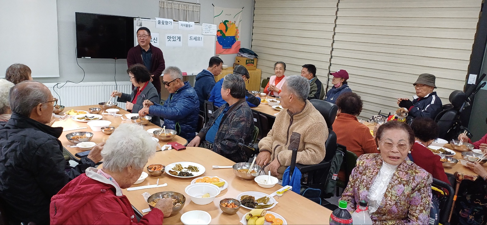 무료한 주말을 보내고 계시는 마을 독거 어르신을 초대하여 점심식사를 대접하는 행사입니다.