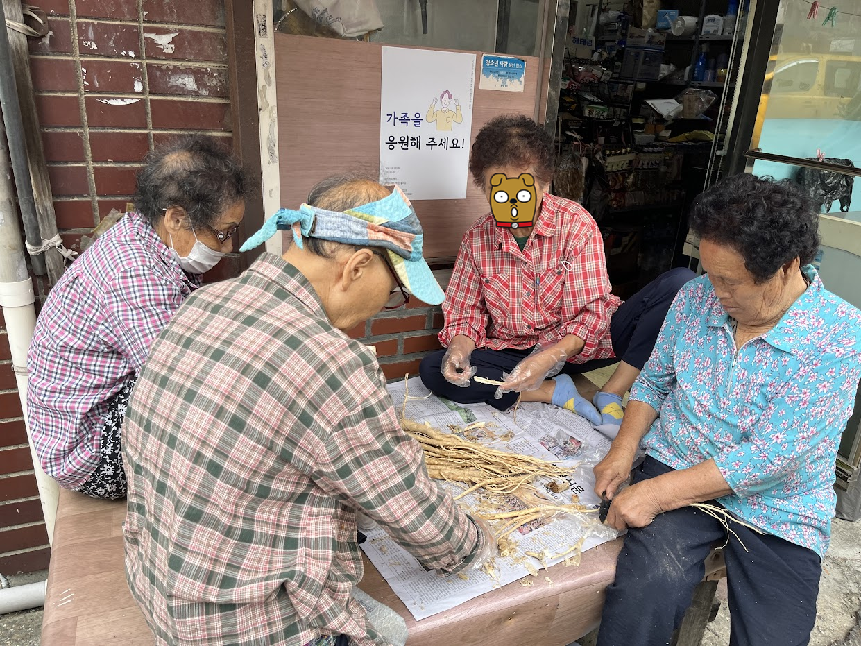 여느때와 같이 도란도란 평상에 앉아 도라지를 다듬으며 이야기 나누기 시작하셨습니다.