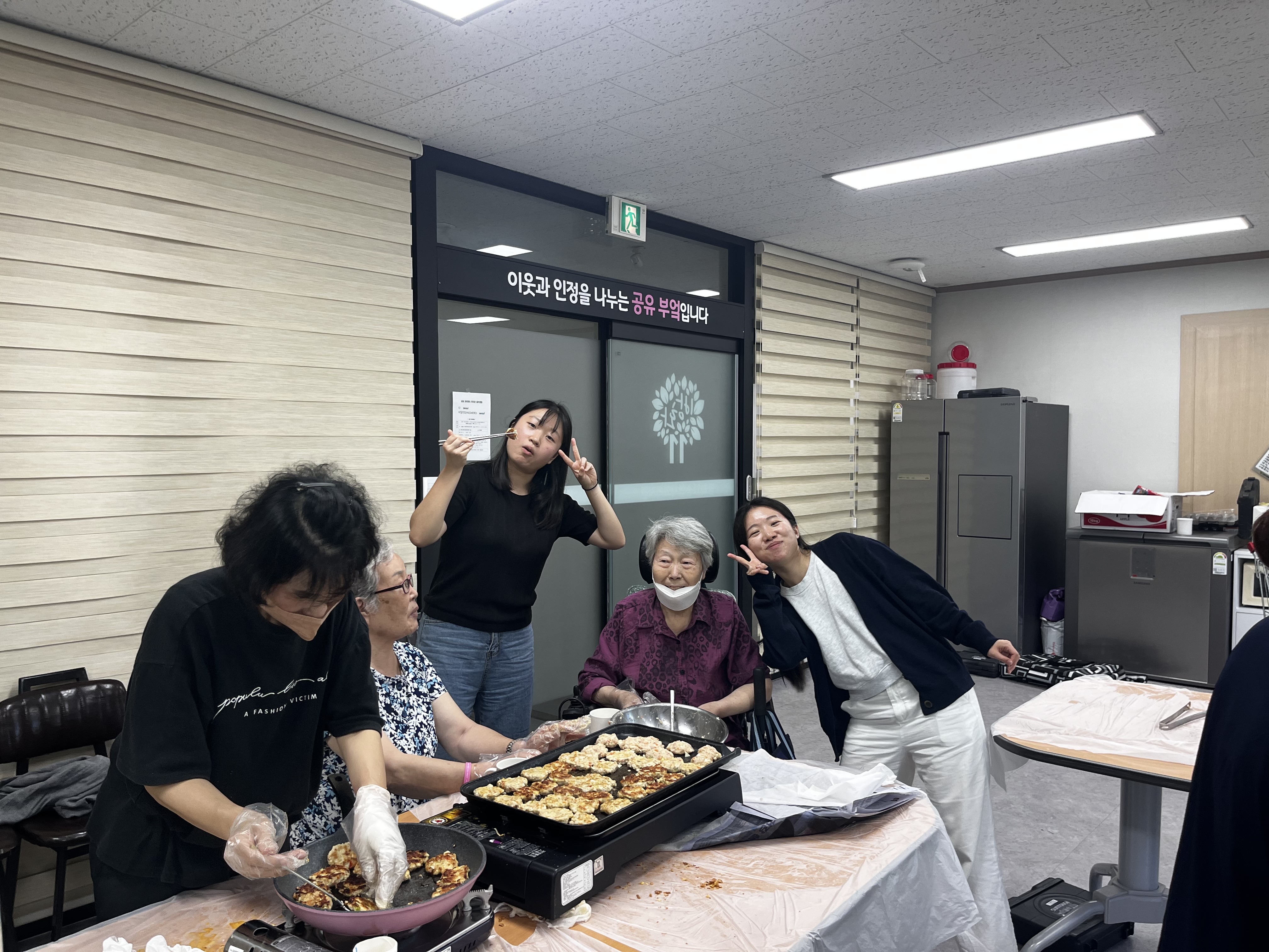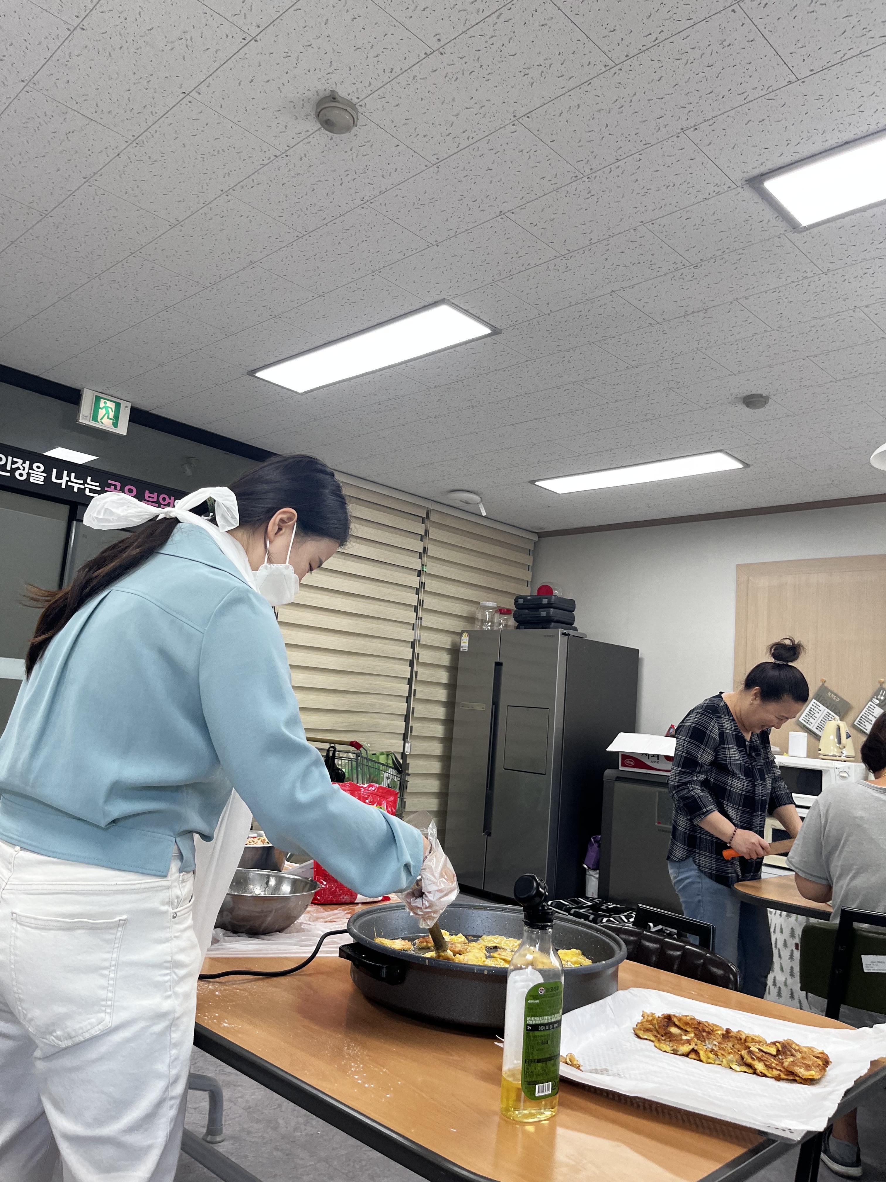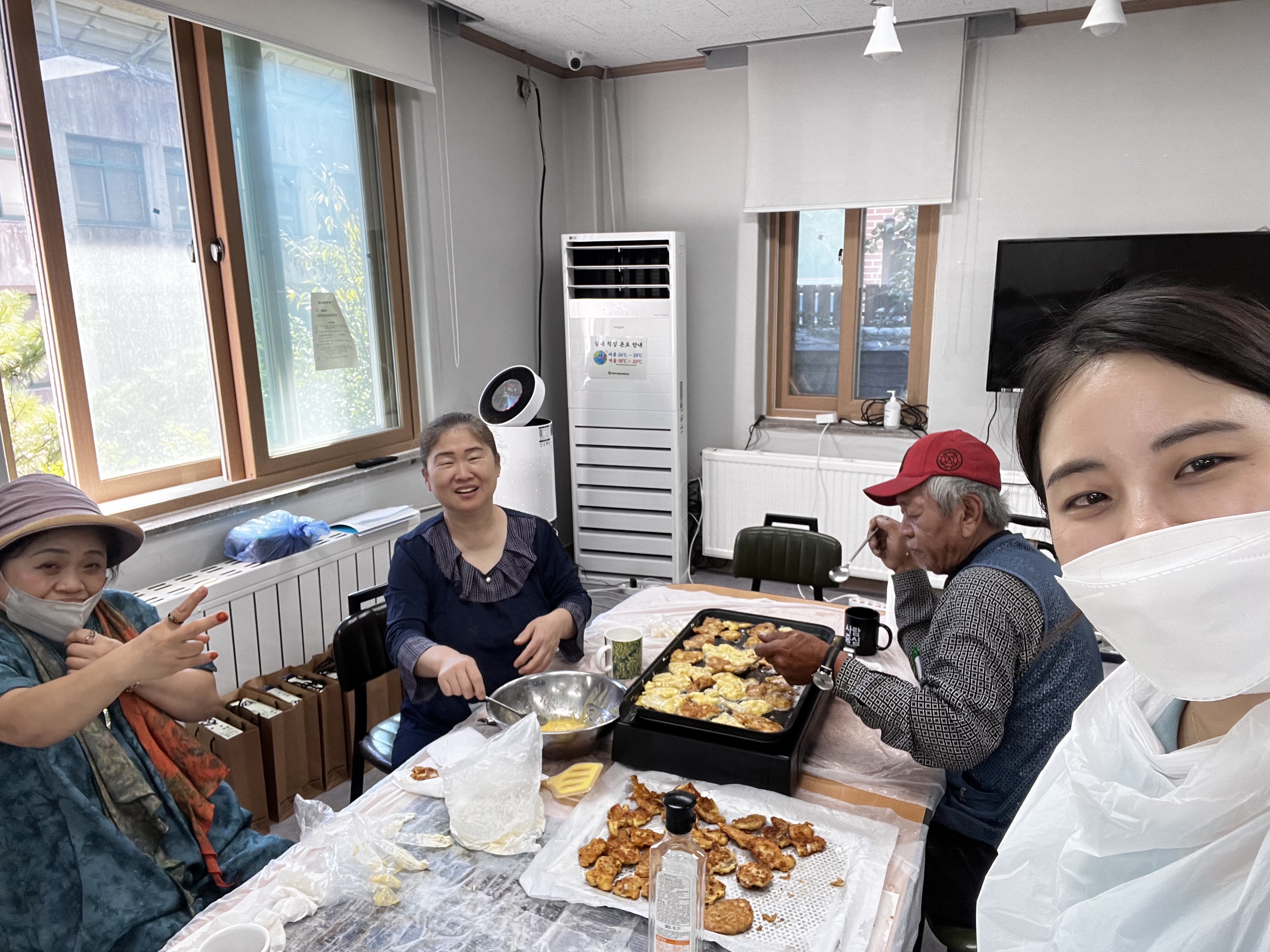 우리 회원님들이 이웃분들에게 직접한 요리를 나누어드리며
