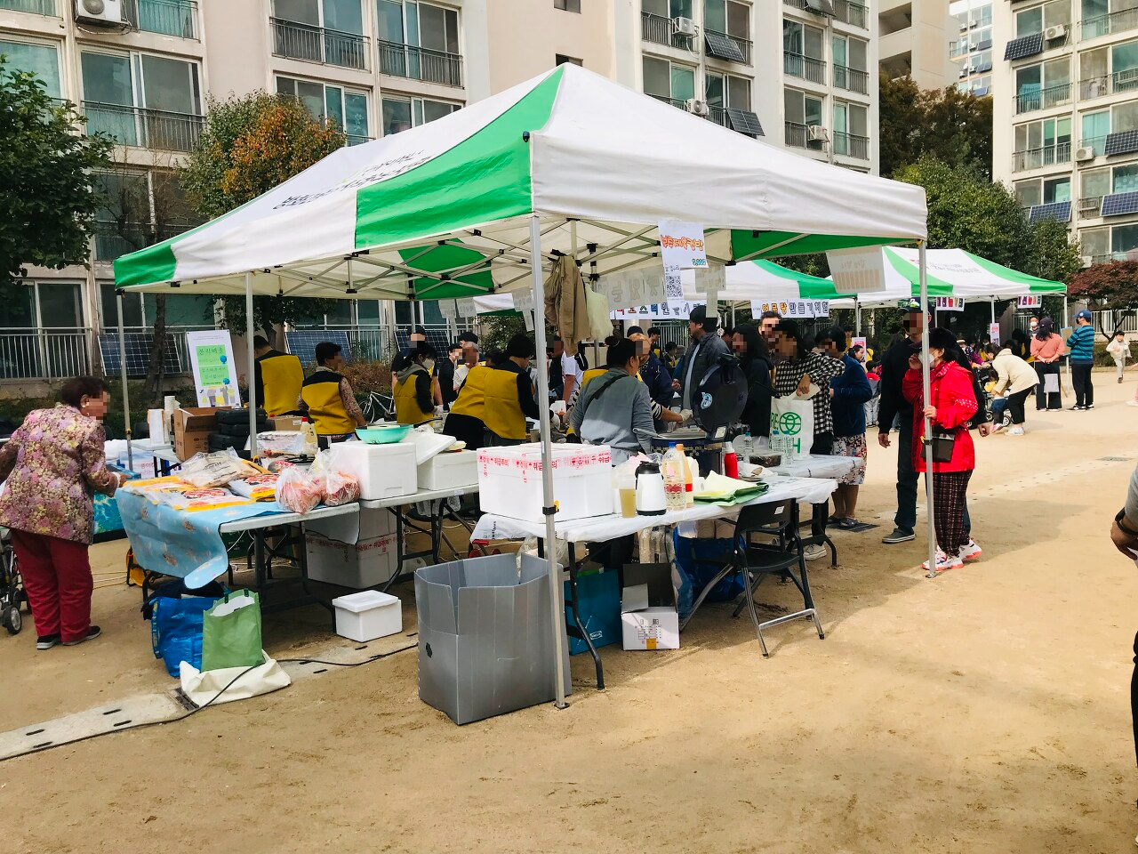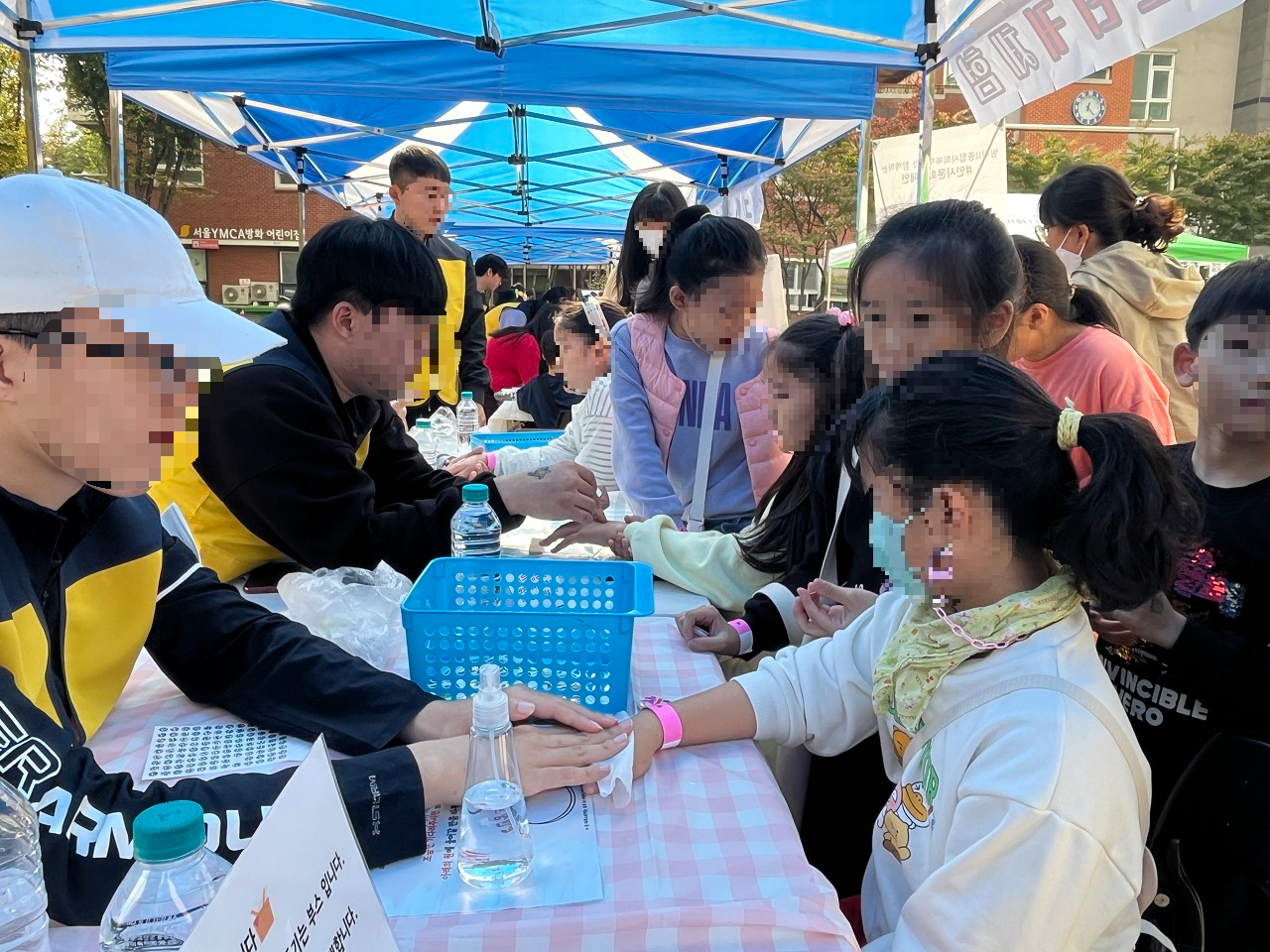 책상과 천막, 의자를 깔고 미리 섭외해둔 자원봉사자들을 부스마다 배치하며 축제를 준비했습니다.