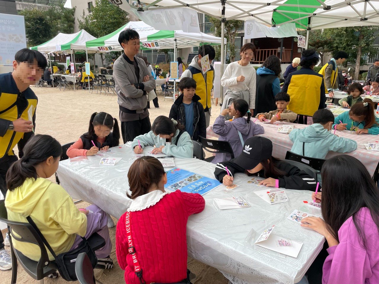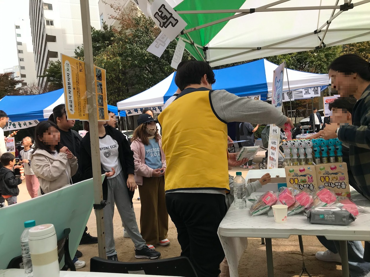 책상과 천막, 의자를 깔고 미리 섭외해둔 자원봉사자들을 부스마다 배치하며 축제를 준비했습니다.