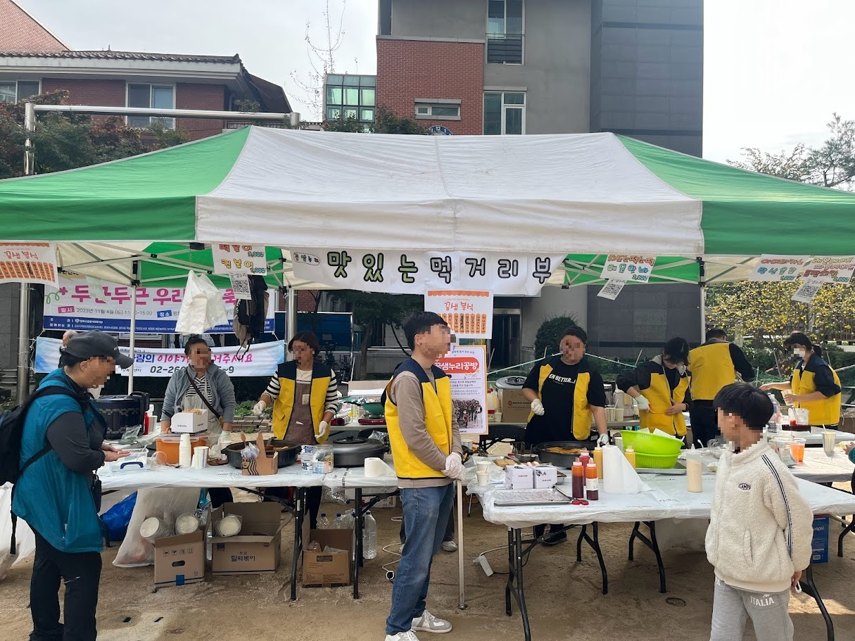 꿈샘누리공방에서는 축제의 꽃인 맛있는 먹거리를 준비해주셨습니다. 소떡소떡, 제육볶음, 떡볶이 등 여러가지 맛있는 먹거리는 주민분들이 더 힘차게 축제를 즐기는 데 힘을 보탰습니다.