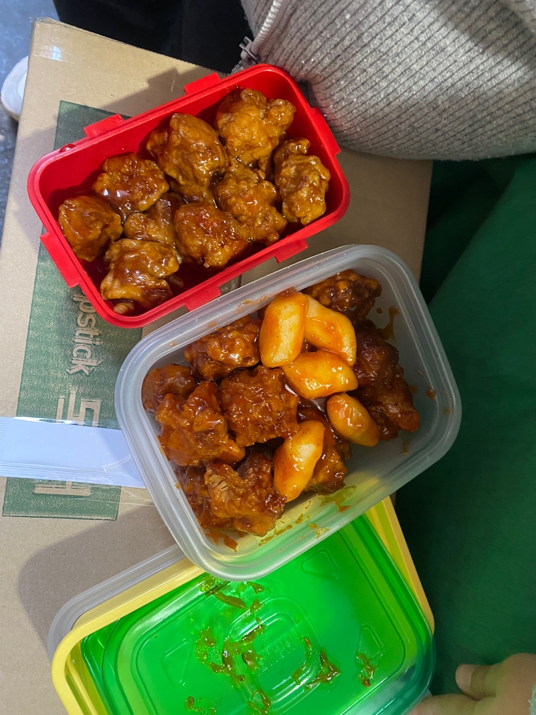 닭강정은 미리 준비해온 도시락 통에 받았습니다.