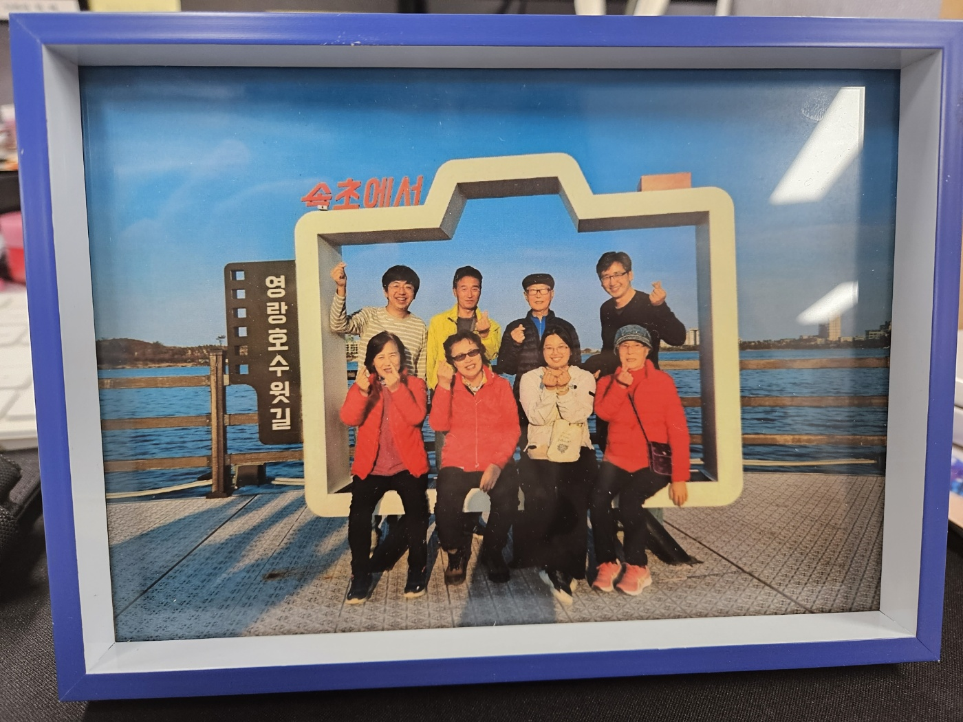 저는 여행의 추억을 담은 영상과 활짝 웃는 단체사진을 인화해서 액자에 넣어 선물했습니다.