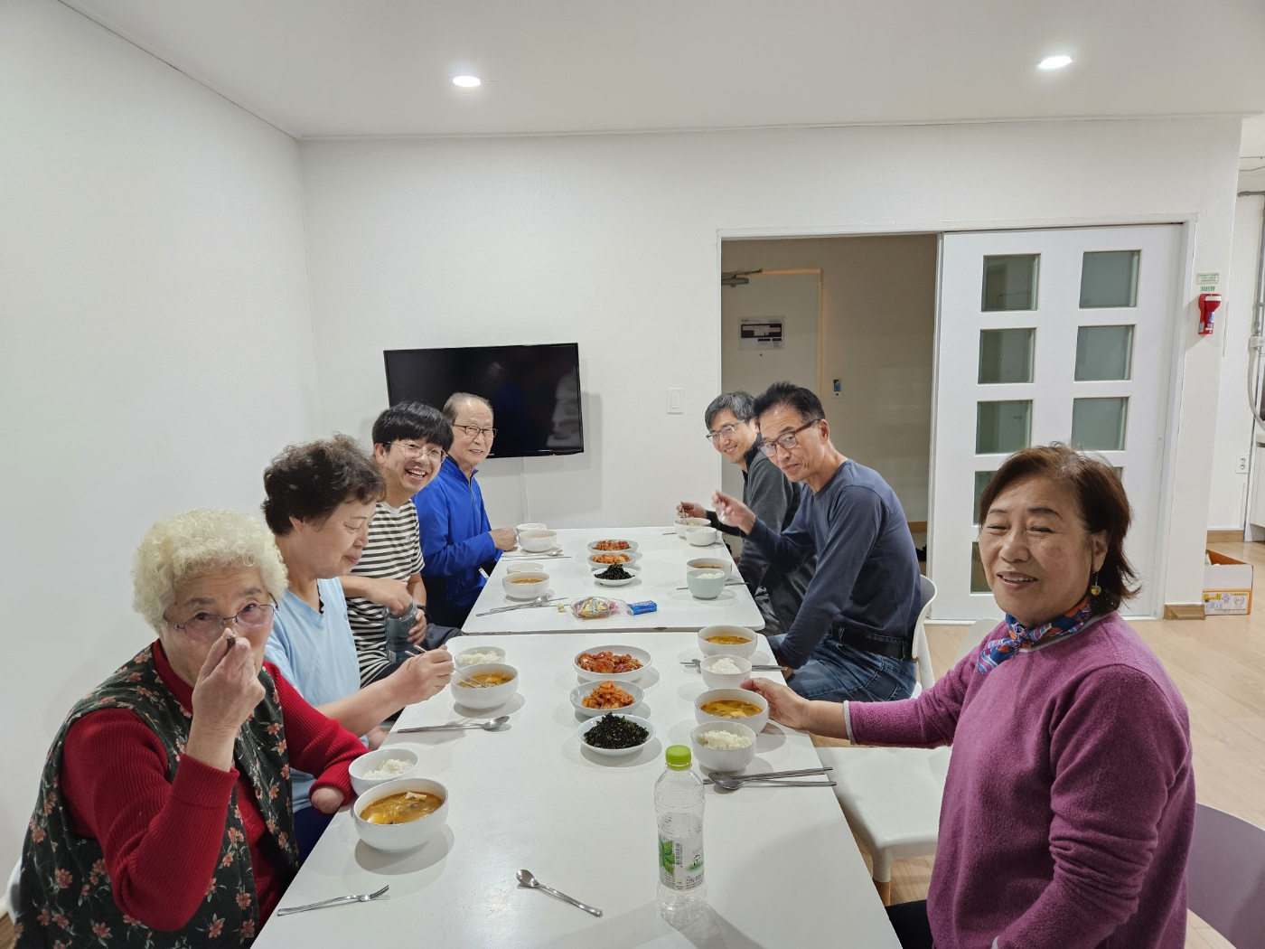 식사는 유련숙 님, 이막내 님 두 분이 준비해주셨습니다. 밥과 국, 반찬까지 푸짐한 아침식사를 차려주셨습니다. 덕분에 아침부터 모두 식탁에 둘러앉아 든든하게 식사했습니다.