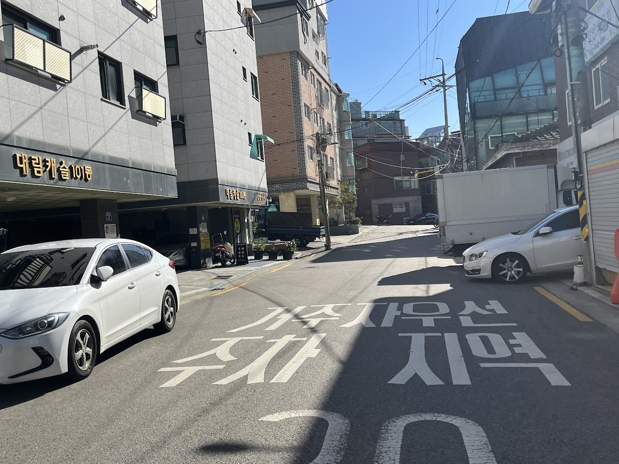 위 사진처럼 차가 한대 지나가면 사람이 지나가는 것도 어려울 정도로 좁은 골목입니다.