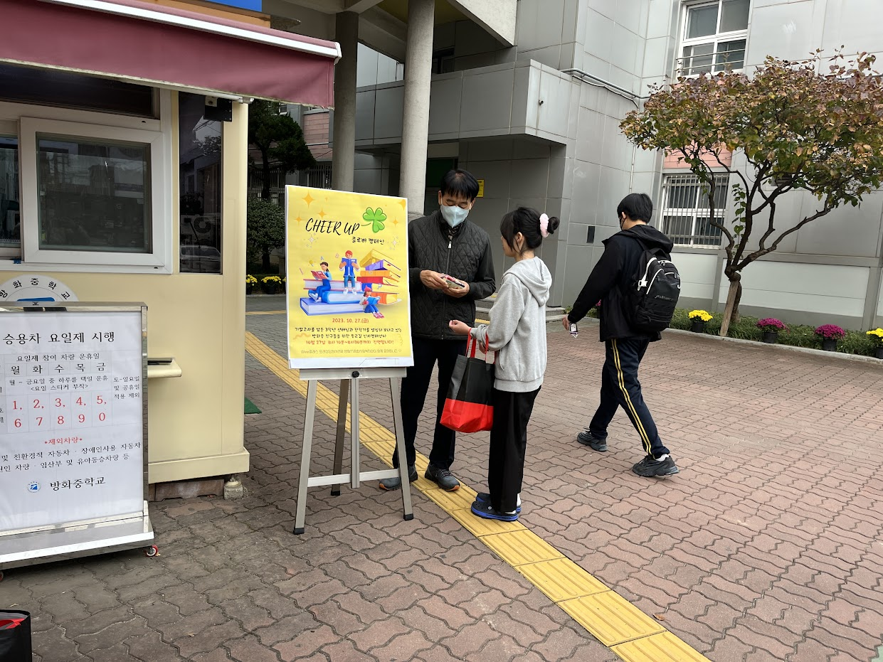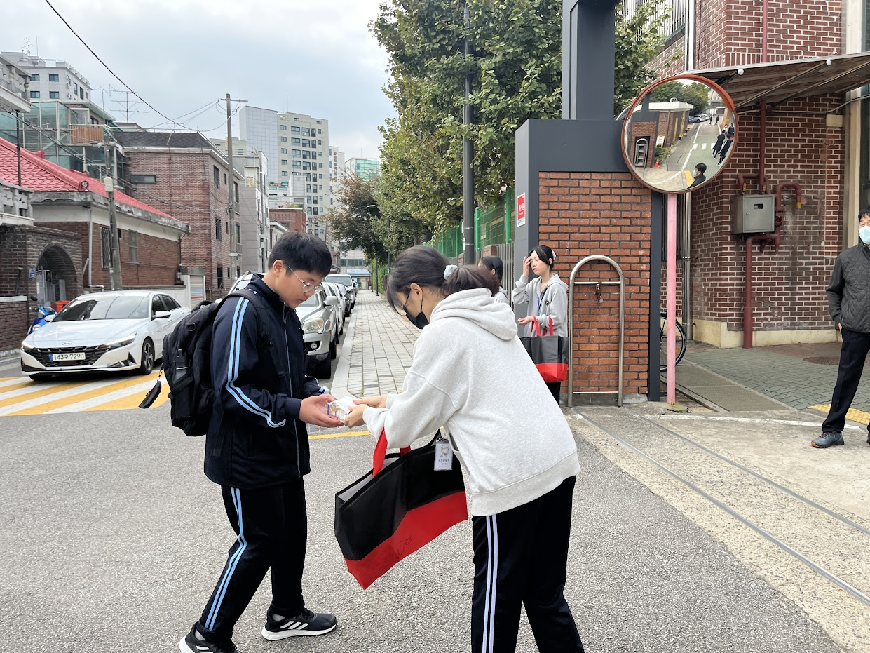 기획단이 등굣길에 웃으며 건넨 응원 한마디가