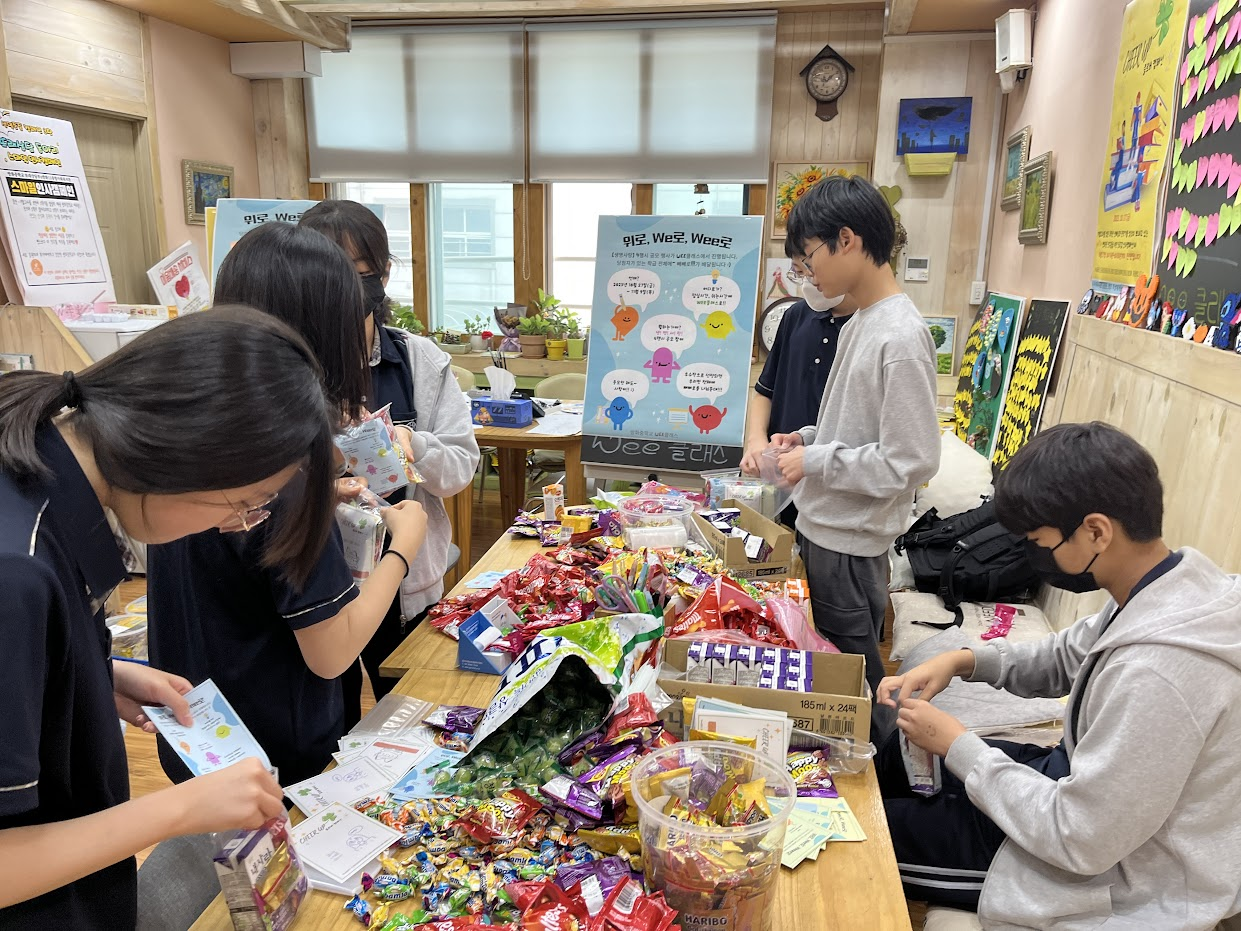 캠페인 꾸러미 안에 홍보지를 넣어 또래상담동아리에서 매년 진행하고 있는