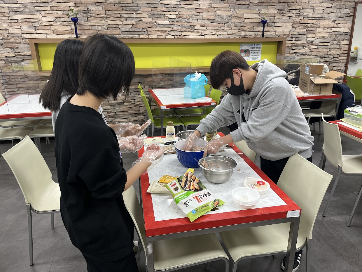 요리선생님이 많이 도와주셔서 금방 재미있고 쉽게 만들 수 있었다."