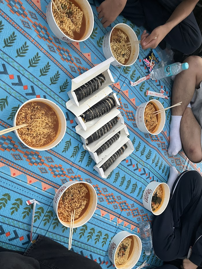 학교나 집에서 먹는 것보다 한강에 있는 강을 보면서 먹는게 더 맛있었던 것 같다.