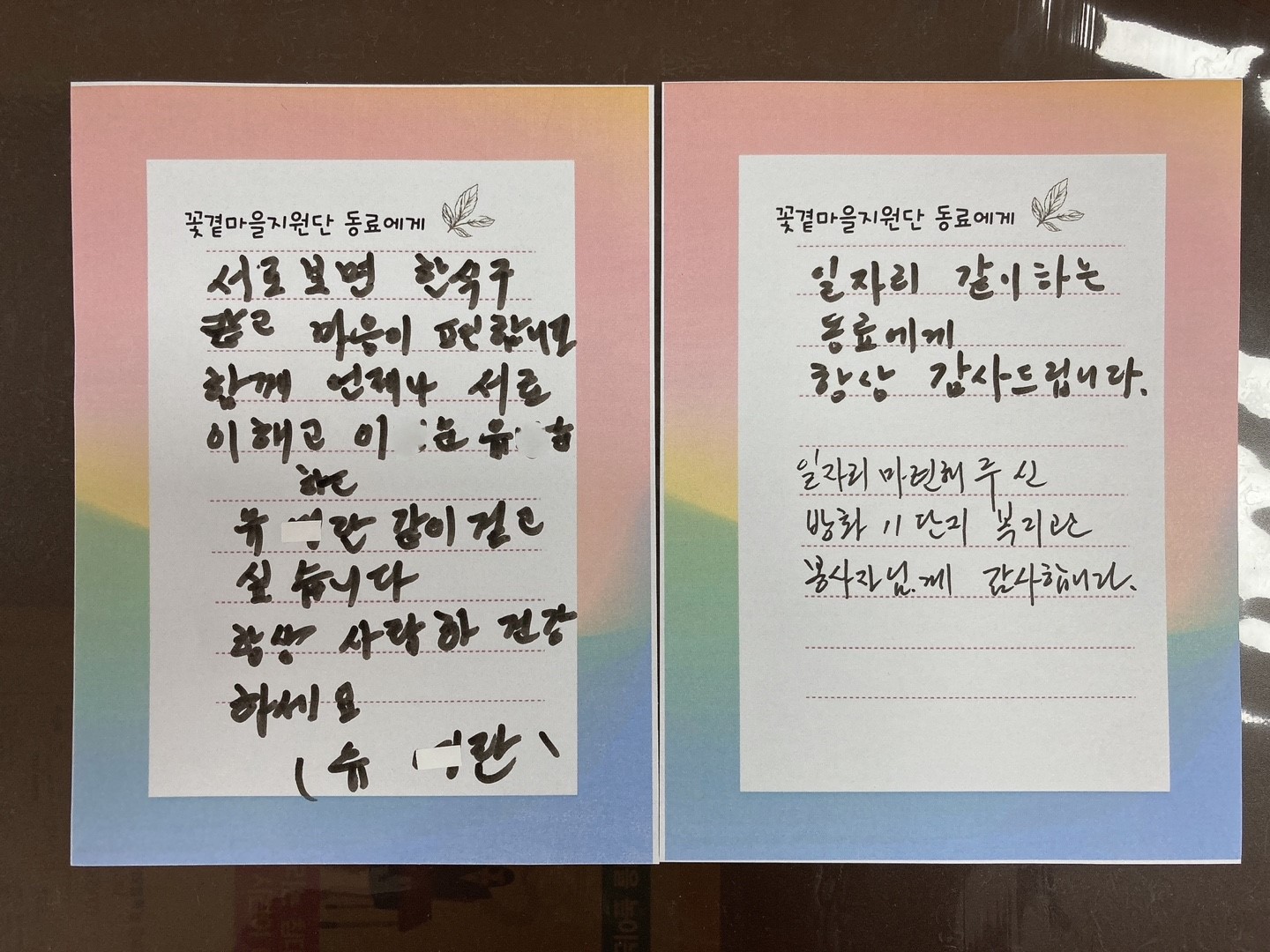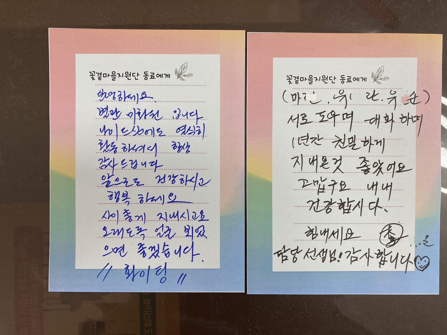 어르신들이 손수 적으신 편지글을 읽다 보니 복지관에서 하는 일자리 활동이 단순히 일이 아니라 어르신들의 삶의 일부이자 친구이자 동료로서 큰 의미가 있는 것 같아서 마음이 훈훈해 졌습니다.