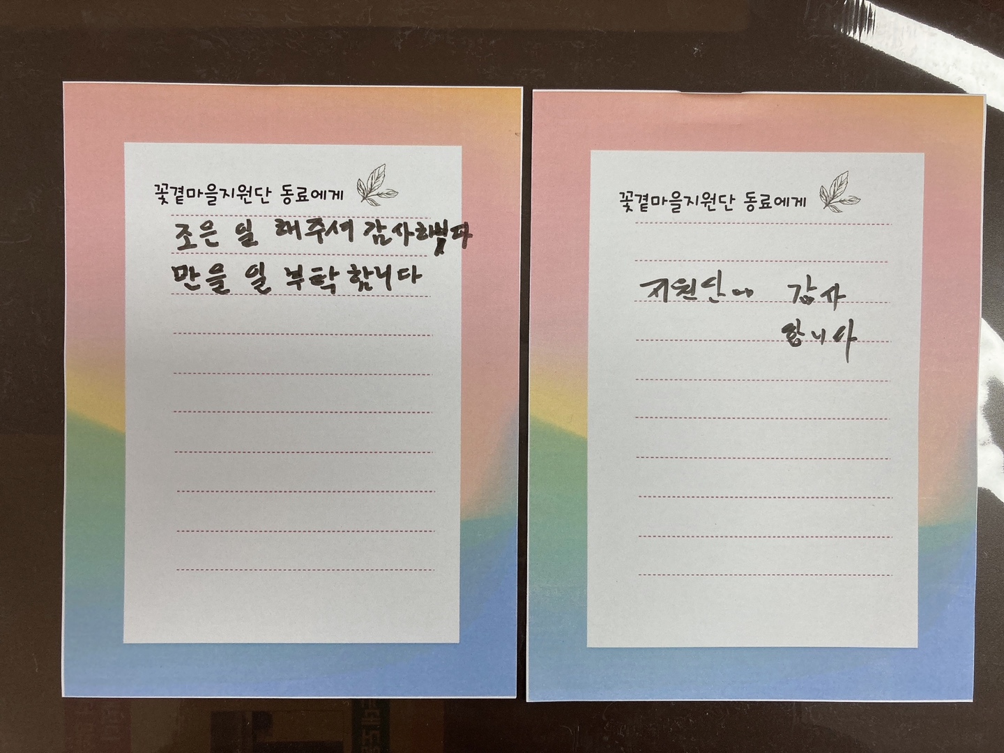 지금까지 함께 활동해온 나의 동료에게 고마운 마음을 편지로 전하는 시간도 가졌습니다.