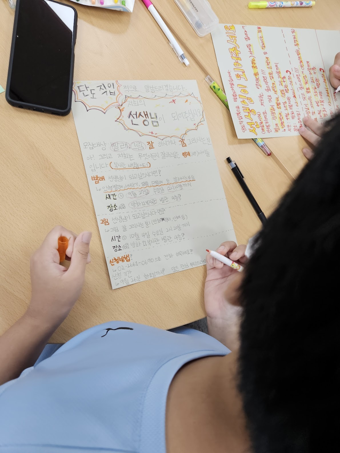 그런 바람을 안고 아이들에게 선생님 모집 홍보지를 만들자고 제안했습니다.