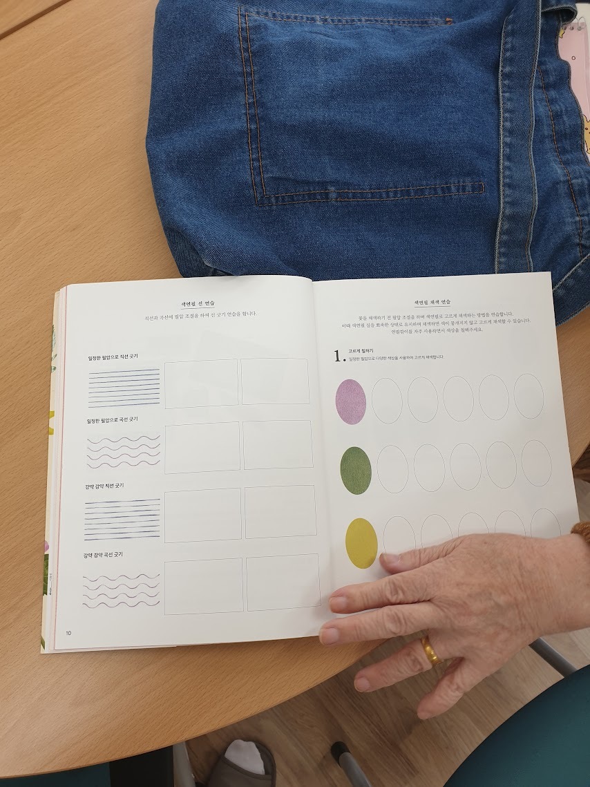 색연필을 사용하는 어르신도 도와주시고자 했지만 시간이 맞지 않았습니다.