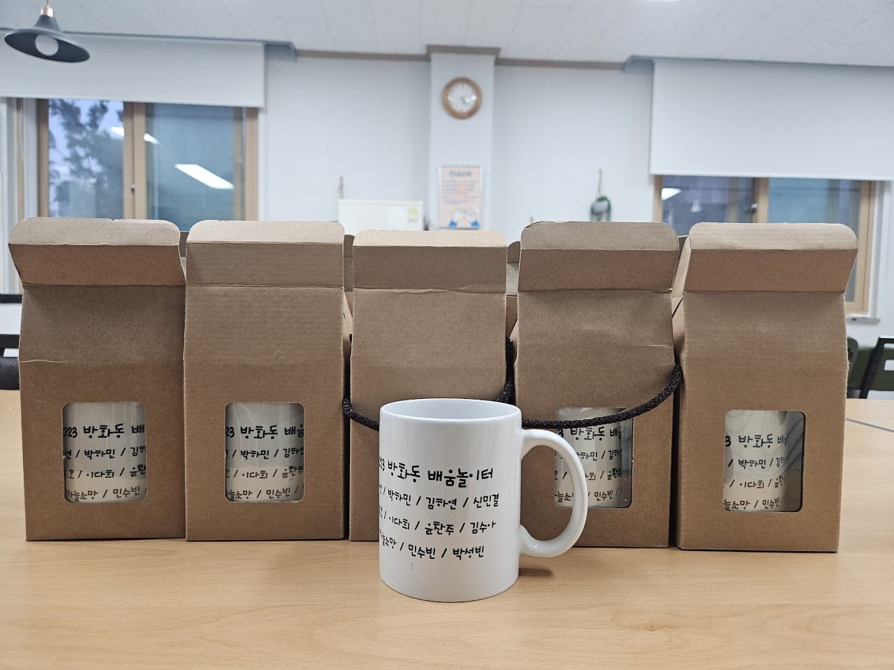 마지막으로 복지관에서 준비한 머그컵을 드렸습니다.