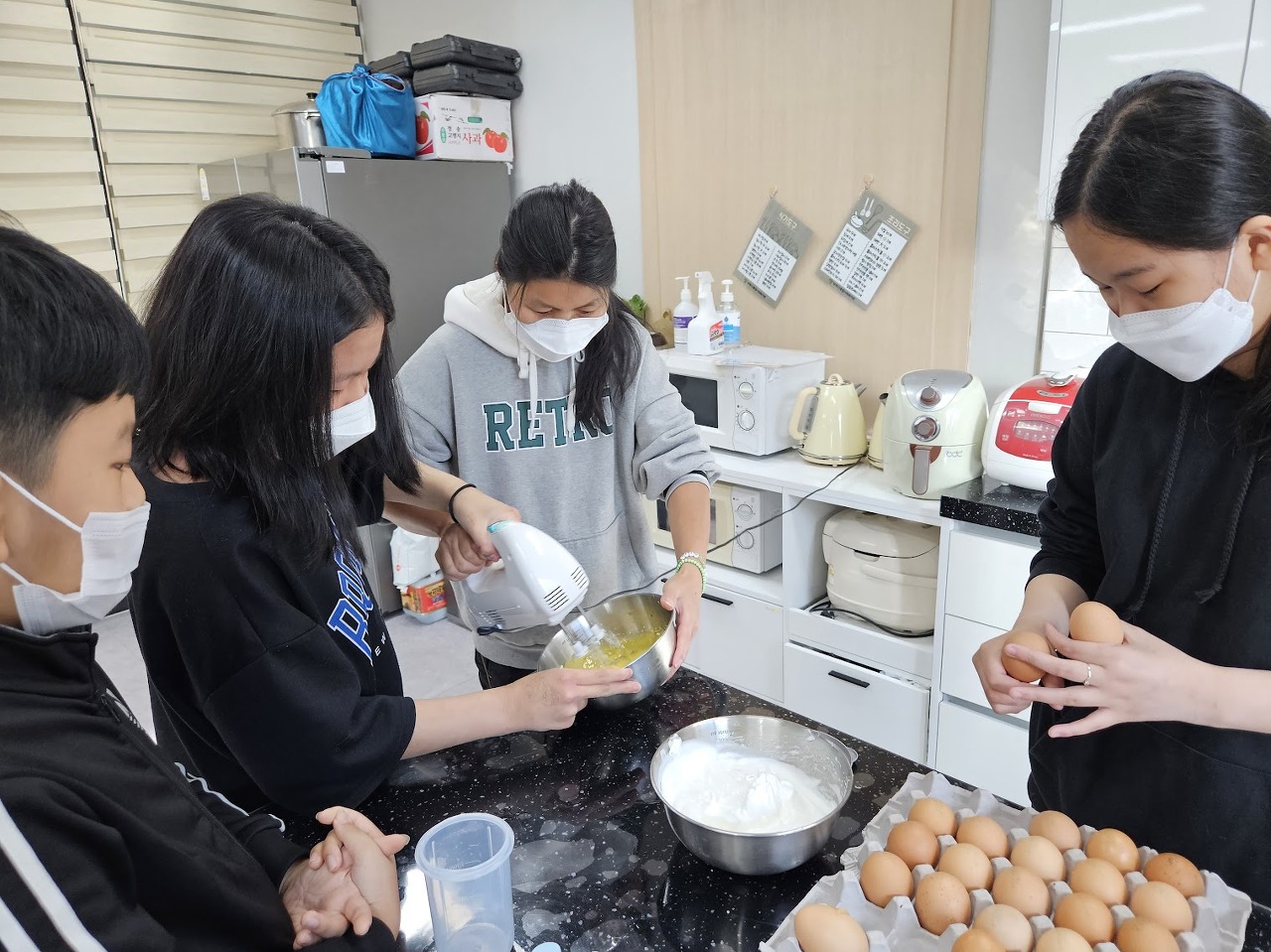 특히, 그때와는 다르게 이번에는 김경옥 선생님이 계란을 휘저어 주는 기계도 챙겨주셨습니다.