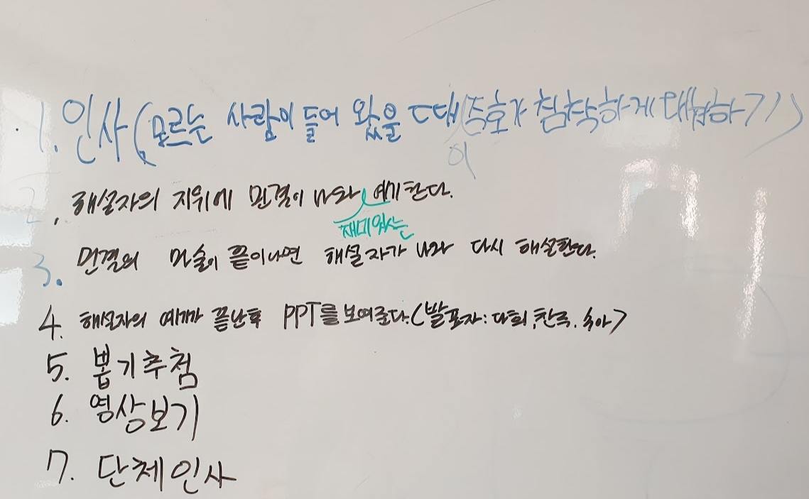 “우리 수료식 벌써 3번째 진행하지? 혹시 어떤 것들을 준비해야 하는지 아연이가 설명해줄 수 있을까?”