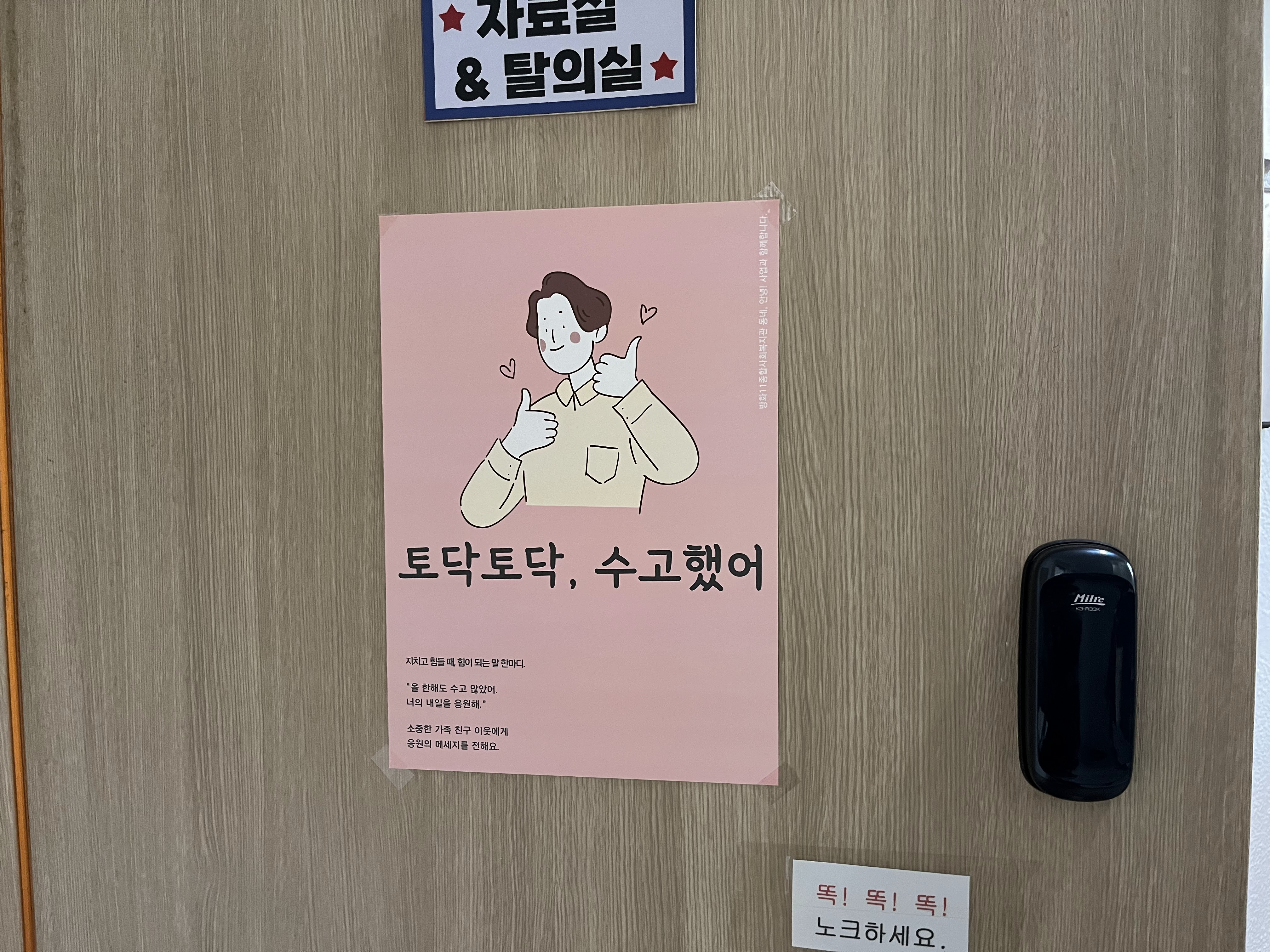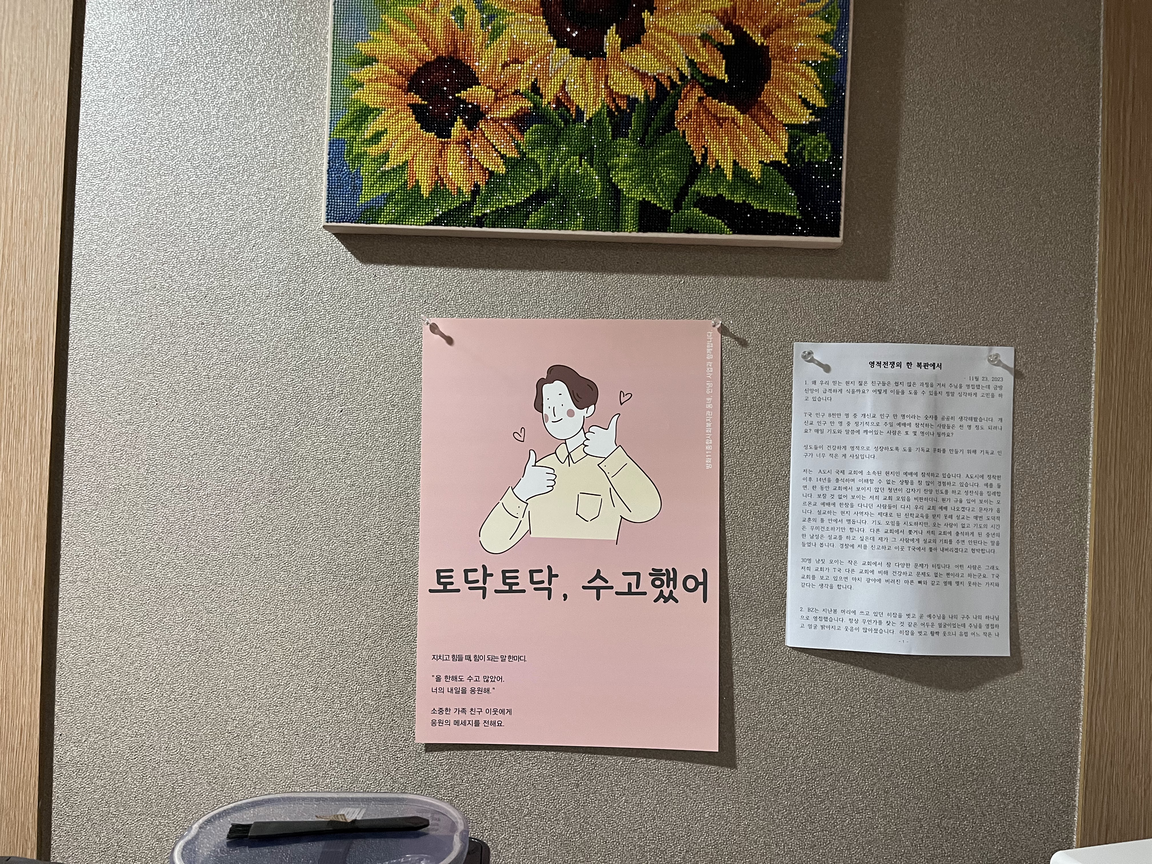 매달 바꿔 주시면서 인사하니까 좋은 것 같아요. 포스터를 붙이도록 한 켠을 내어드리는 일이
