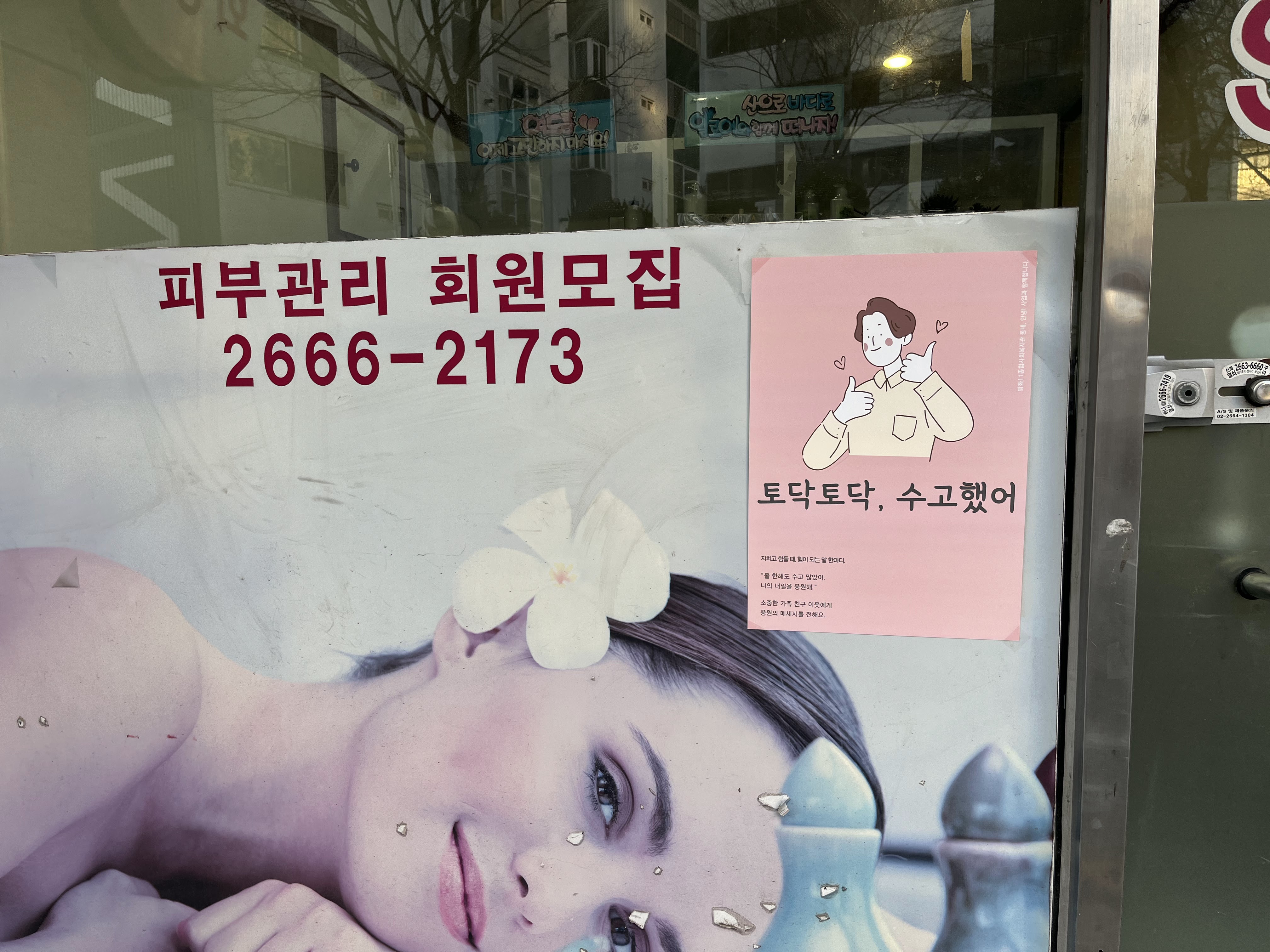 우리 가게가 작아서 뚫어지게 쳐다보는 건가 싶으면 가게에 붙인 포스터를 보고 가는 사람들이더라고요.