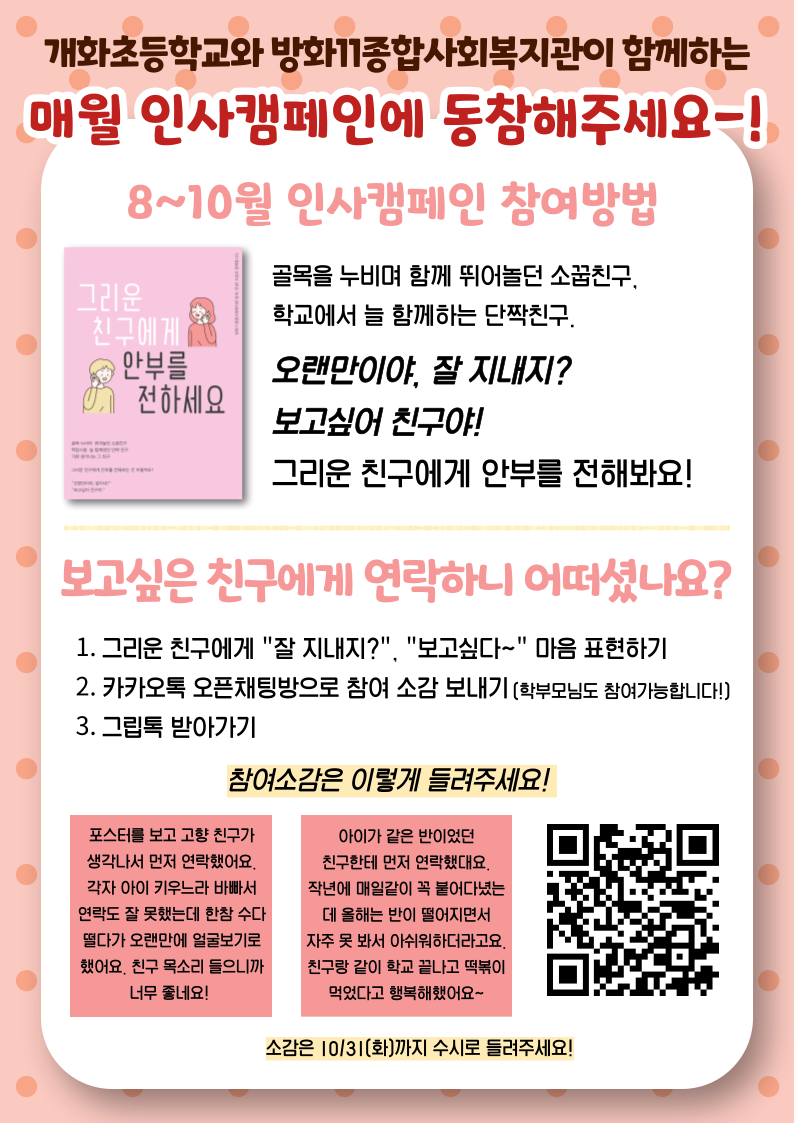 8~10월 인사캠페인 : 그리운 친구에게 안부를 전하세요