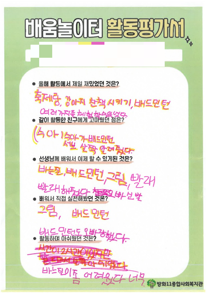 방화동 배움놀이터 | 진짜 마지막 활동평가!