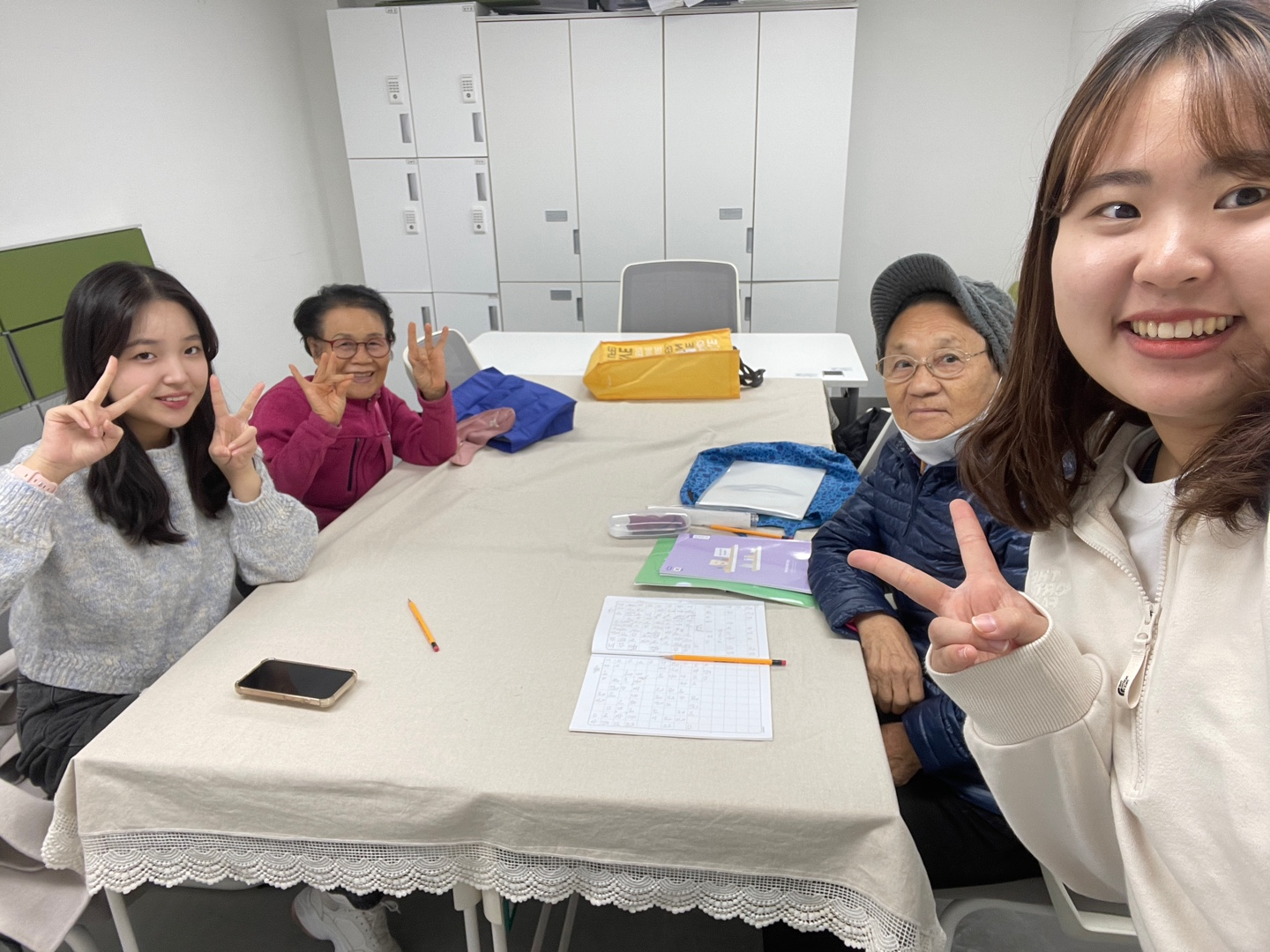 어떻게 한글을 알려드리면 좋을지 봉사자와 의논했었습니다.