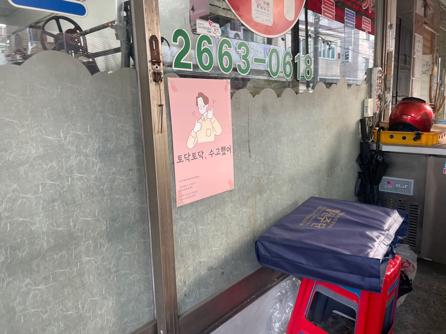 "자주 오는 손님이 보셔요. 물어보면 복지관에서 이웃끼리 인사하라고 만들어 붙였다고 말하죠~