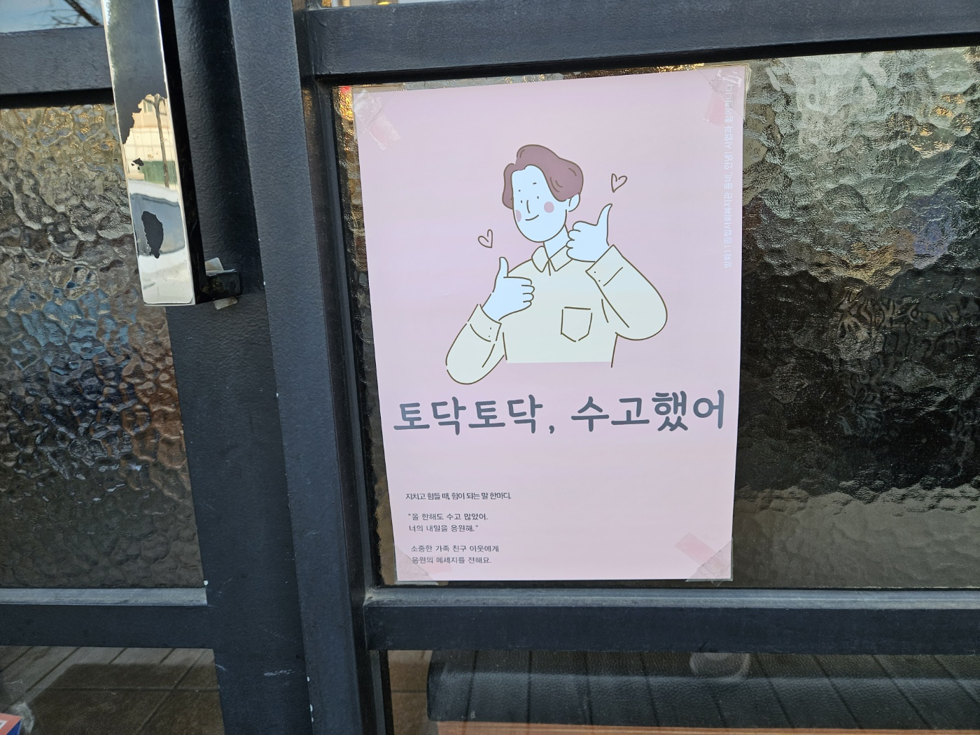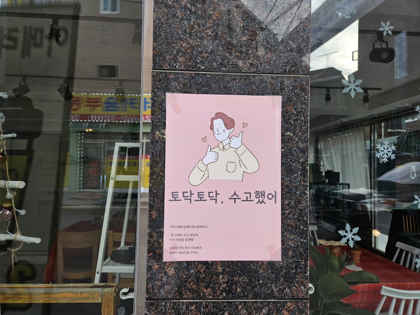 여러가지로 안부 물으며 지내는게 좋아보여요. 포스터가 그 역할을 해주는 것 같아요.