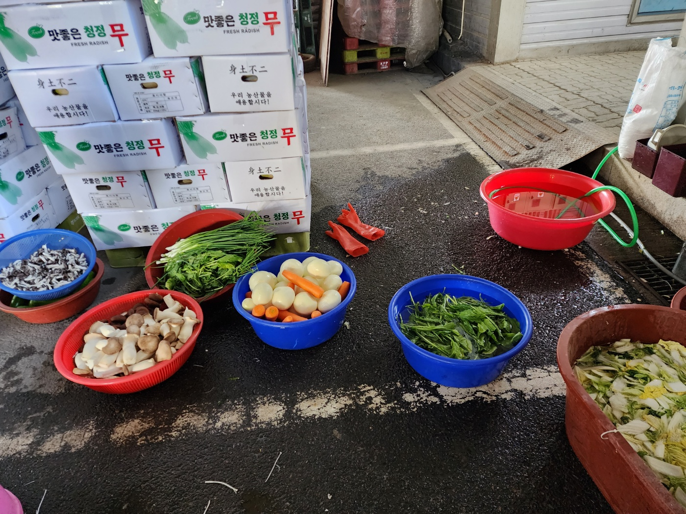 농수산물 사장님들께서 운영을 안하는 낮시간 동안 빌려주셨습니다.
