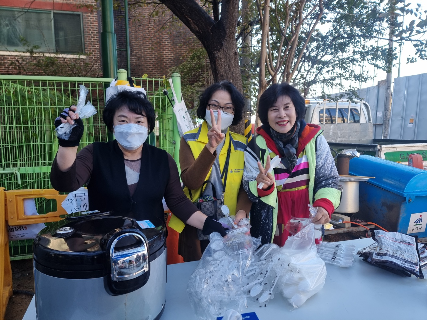 그 외에도 진교훈 강서구청장님, 단장님 가족 분들, 동네사람들 김아진 님, 이제연님, 이수민 님과 아이들, 주민센터 직원분들 많은 지인분들까지 희망드림단 부스에 들러 짜장밥과 김치를 포장해가셨습니다.