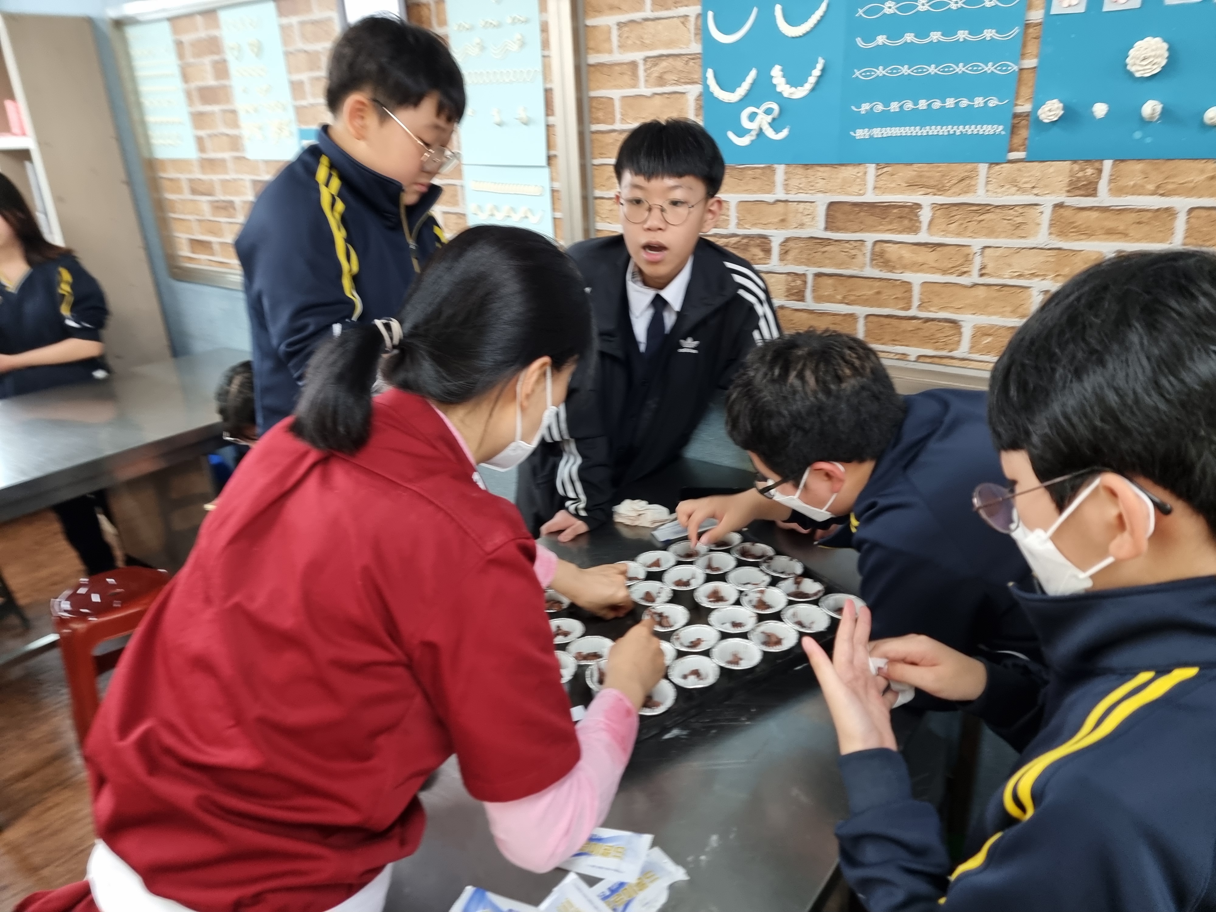 처음에는 초등학생들이라고 해서 별로 안귀여울 줄 알았는데 정말 유치원생들처럼 너무 귀여웠다. 우리가 열심히 만든 초코 머핀을 귀여운 아이들이 맛있게 먹어주면 좋겠다. 다음에도 많은 사람들에게 열심히 정성껏 만든 음식을 나눠주고 싶다. 정말 재밌었고 좋은 경험이었다. (4월, 최*경)