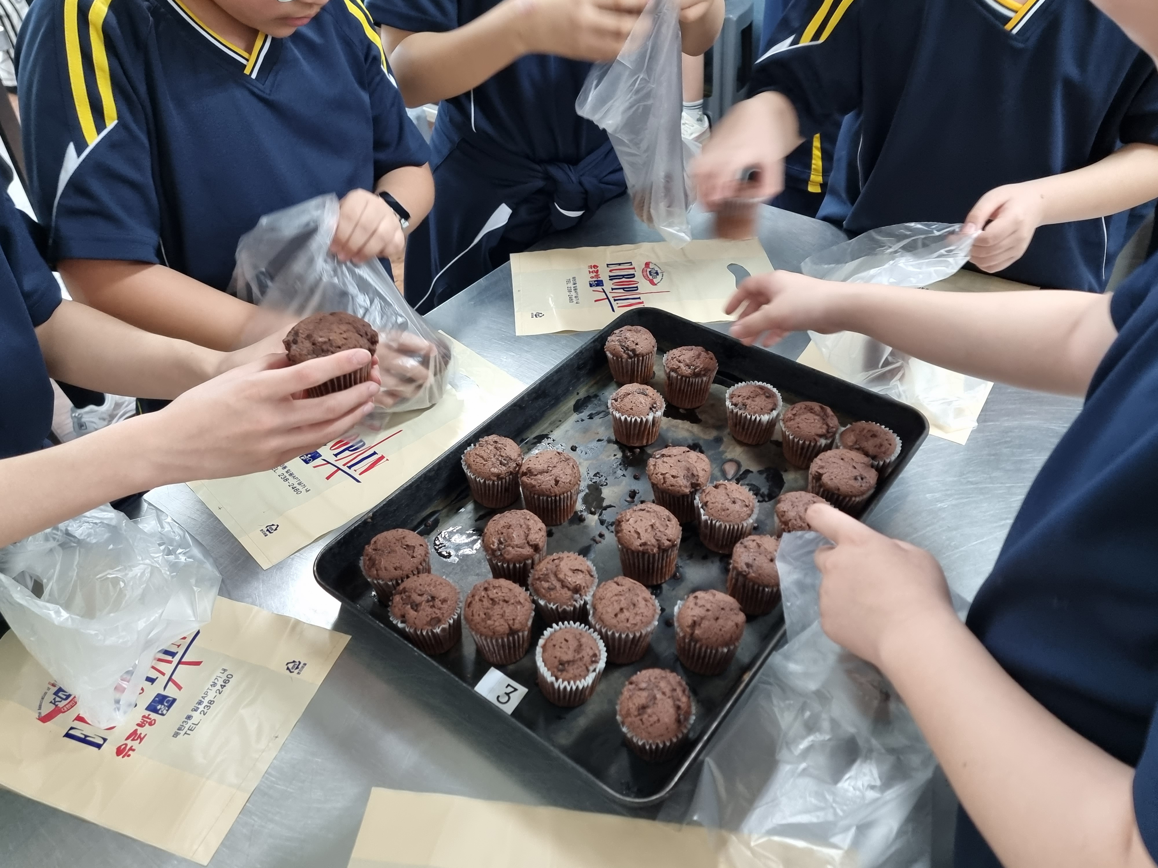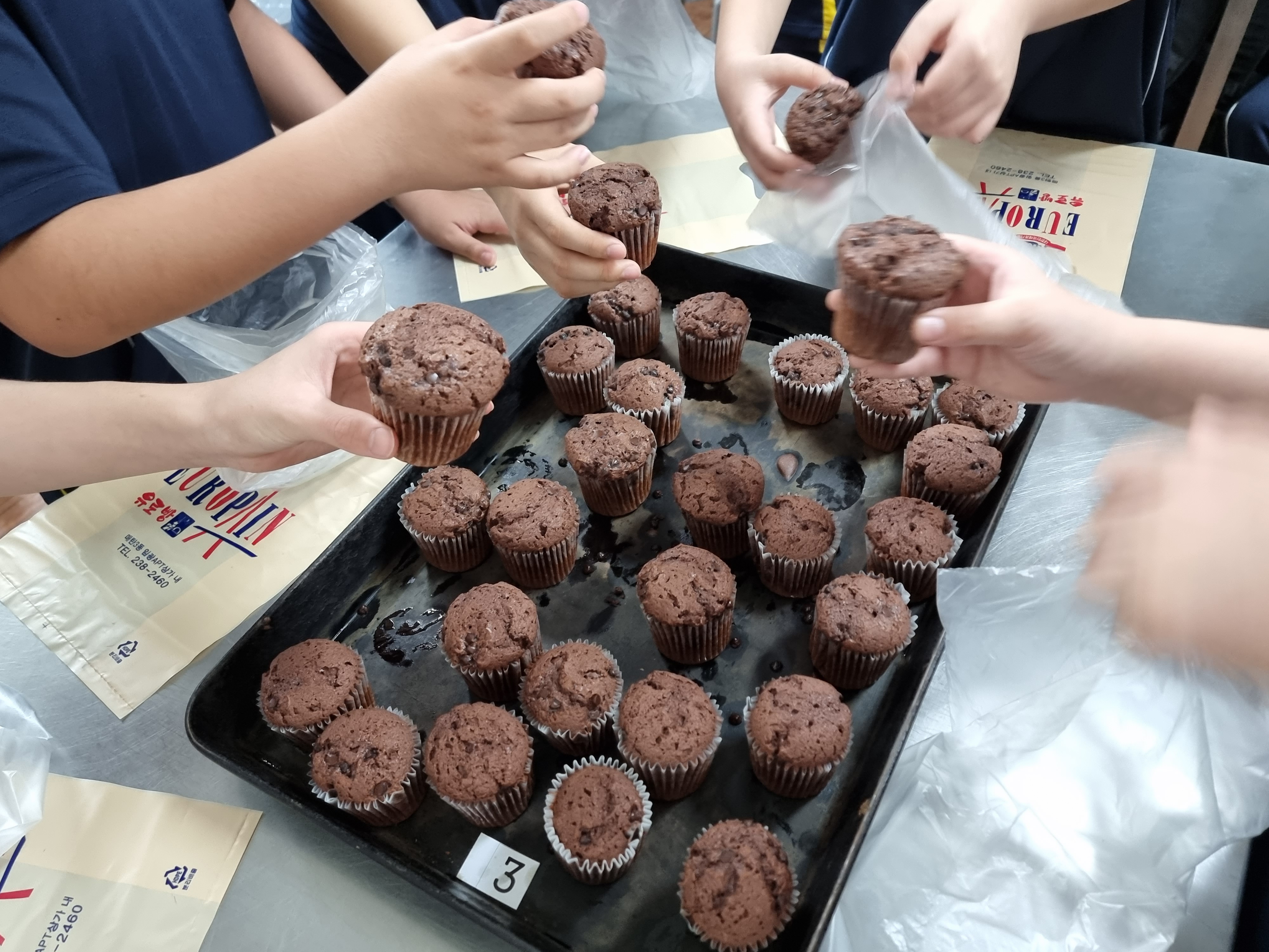 친구들과 초코 머핀을 만들려고 가는 것부터 만드는 과정 만든 결과물 등 모두모두 아주 재밌었고 특히 열심히 만든 몇몇개를 다른 이웃에게 기부해줄 수 있는 것이 너무 좋았다. 그 아이들이 우리들이 열심히 정성껏 만든 초코 머핀들을 맛있게 먹어줄 것을 생각하면 뭔가 아주 좋은 착한 일을 한 것 같아서 기분이 너무 좋고 뿌듯한 것 같다. 나중에 또 이런 활동을 할 수 있게 되면 꼭 해야겠다. (4월, 김*욱)