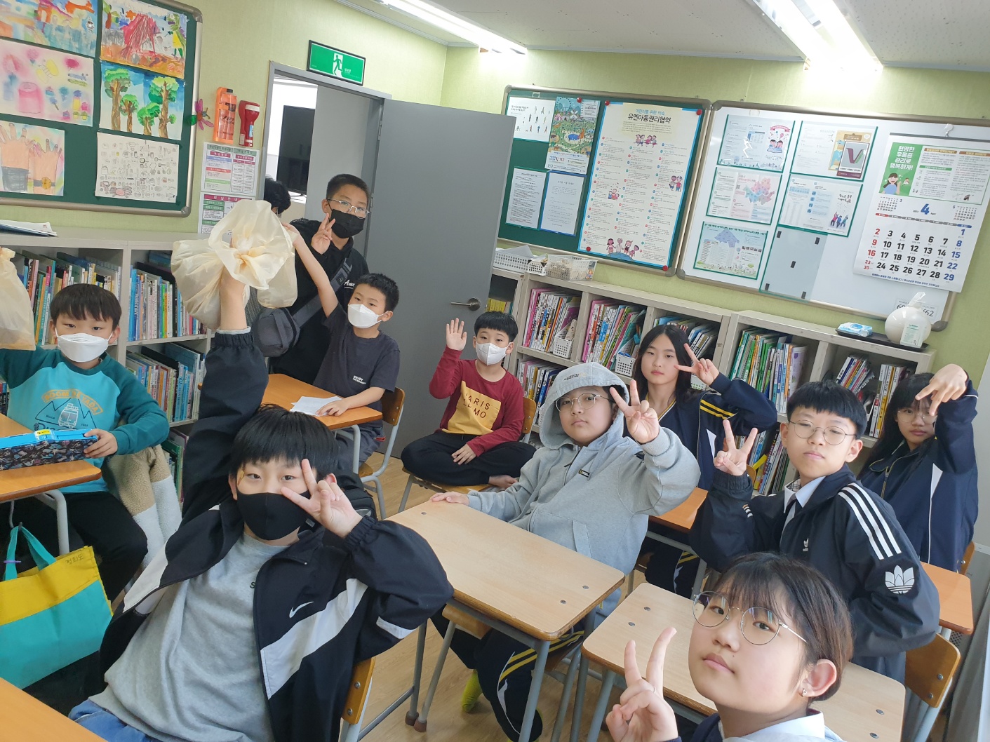 중학생이 2조로 나누어 2곳에서 아이들을 만났습니다.