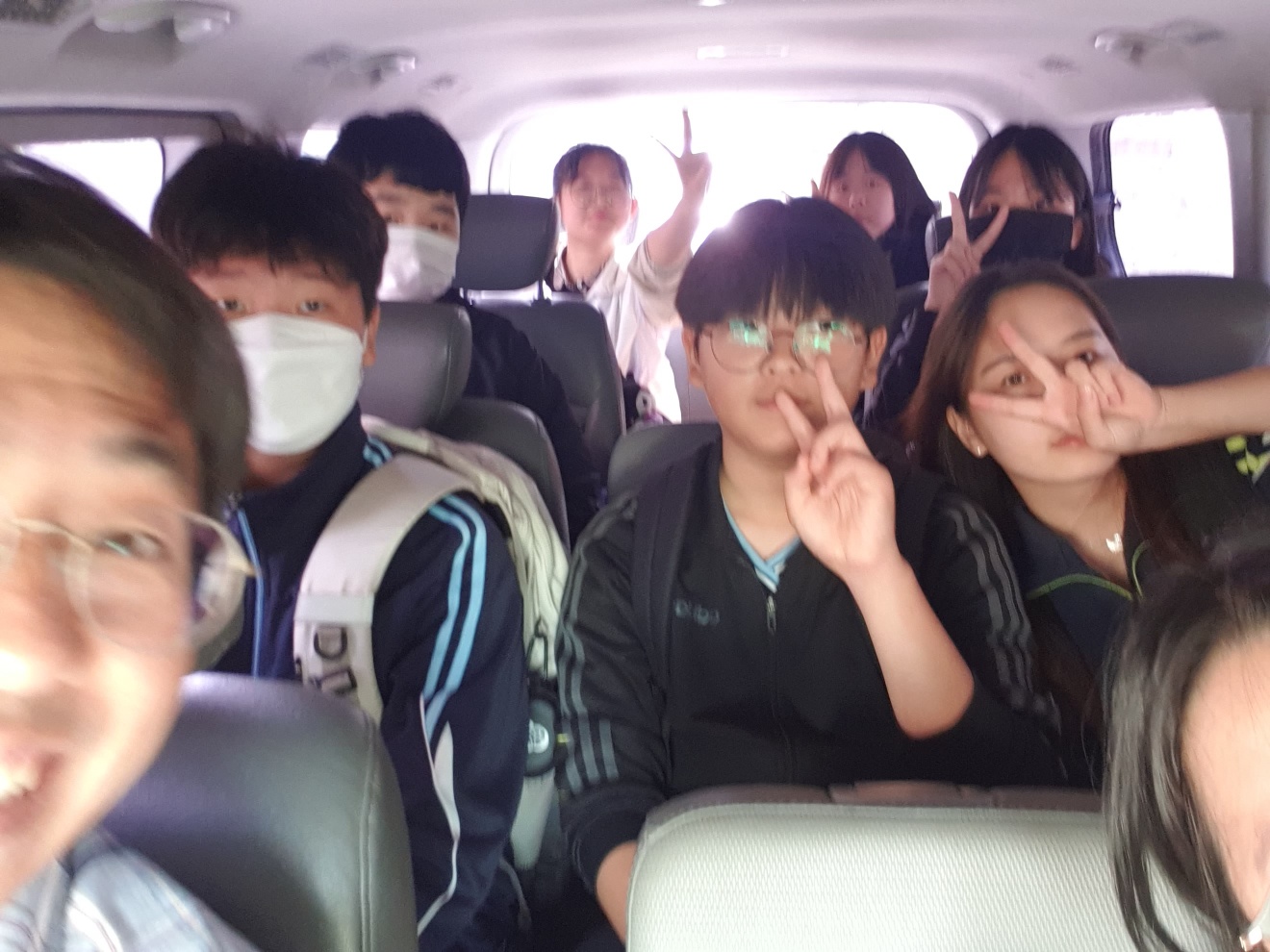 복지관 차를 타고 이동했습니다.