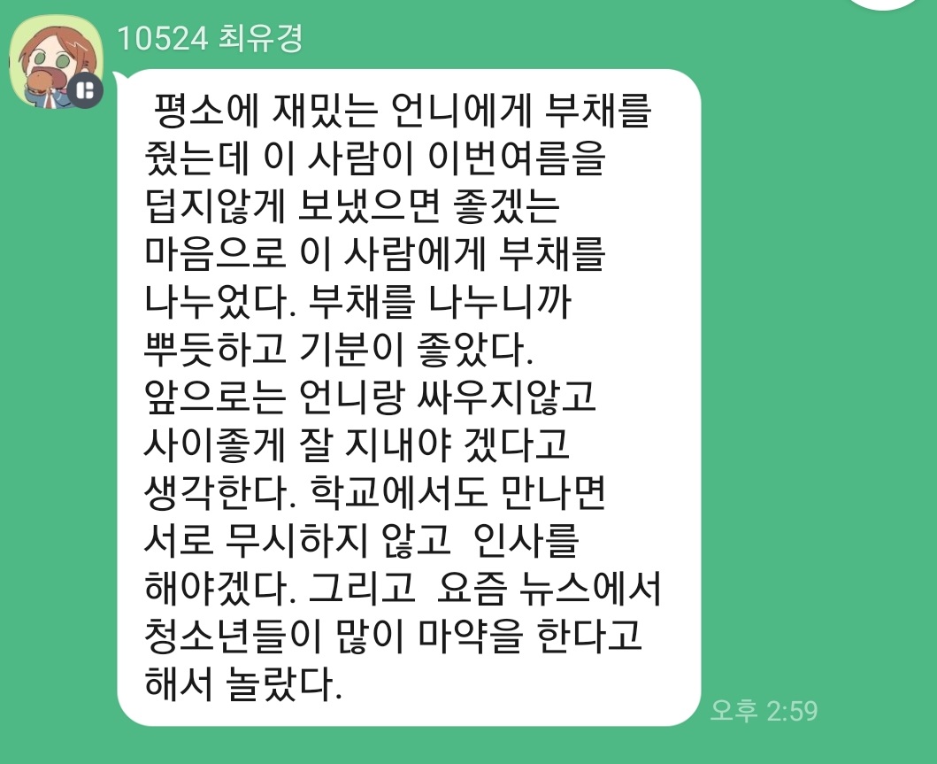 여름방학 시작 전에 나누는 겁니다.