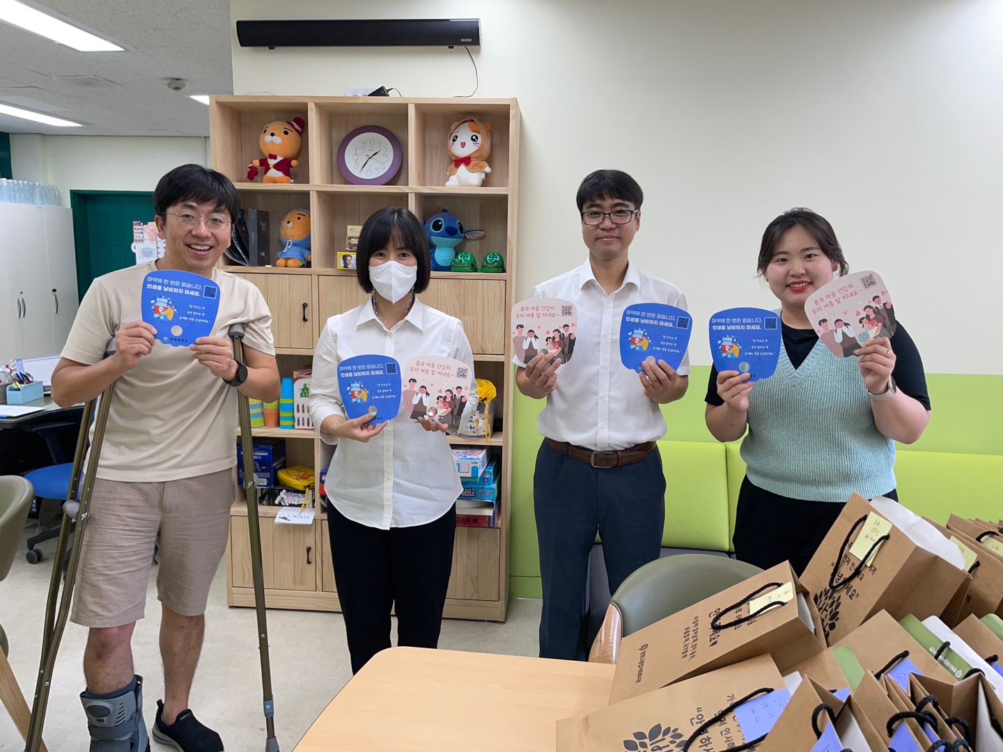 마약 캠페인에 더하여 복지관 이웃인사 캠페인을 함께 진행하기로 했습니다.