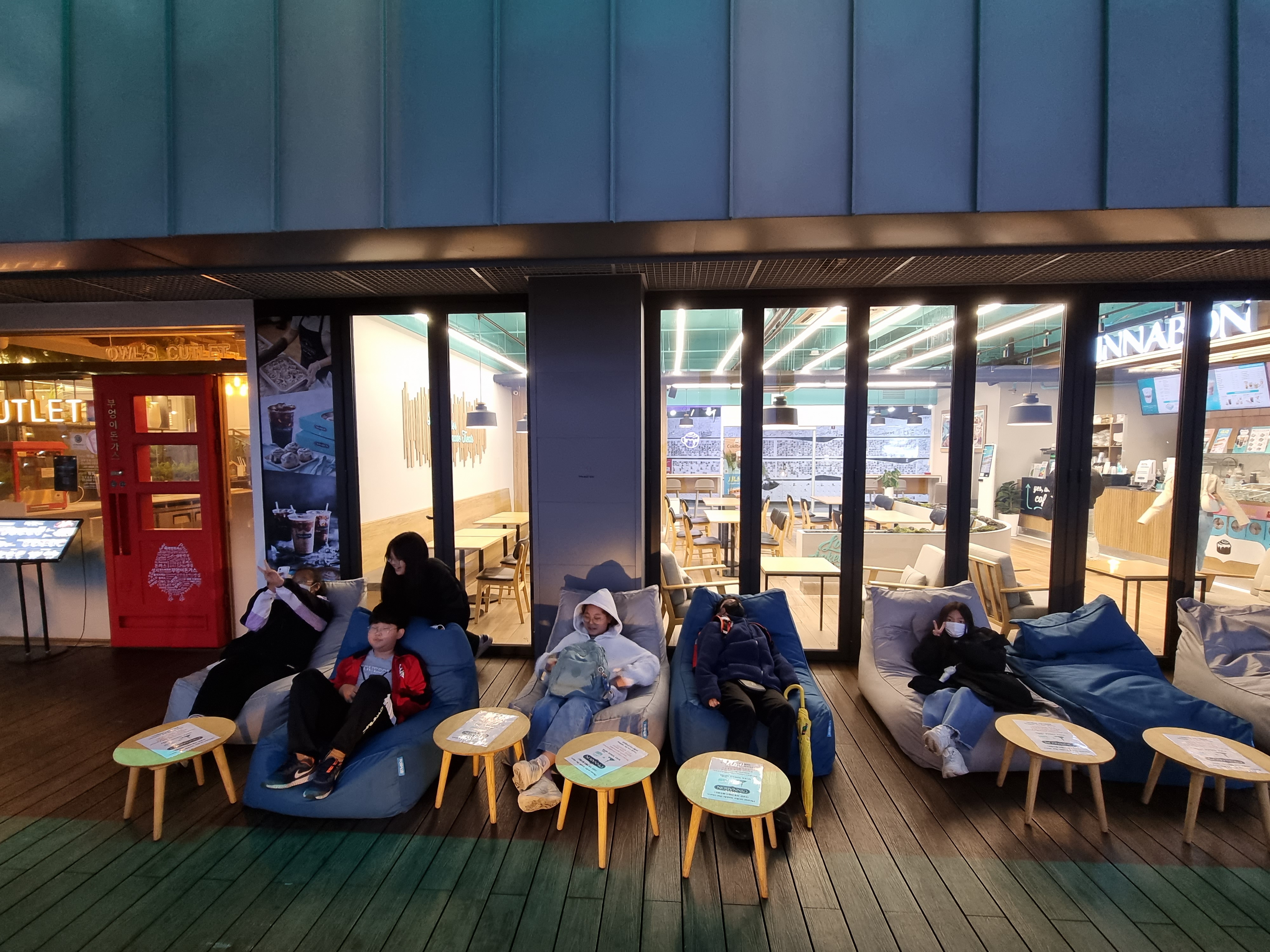 지하철에서부터 서로 간식을 나누어 먹었습니다.