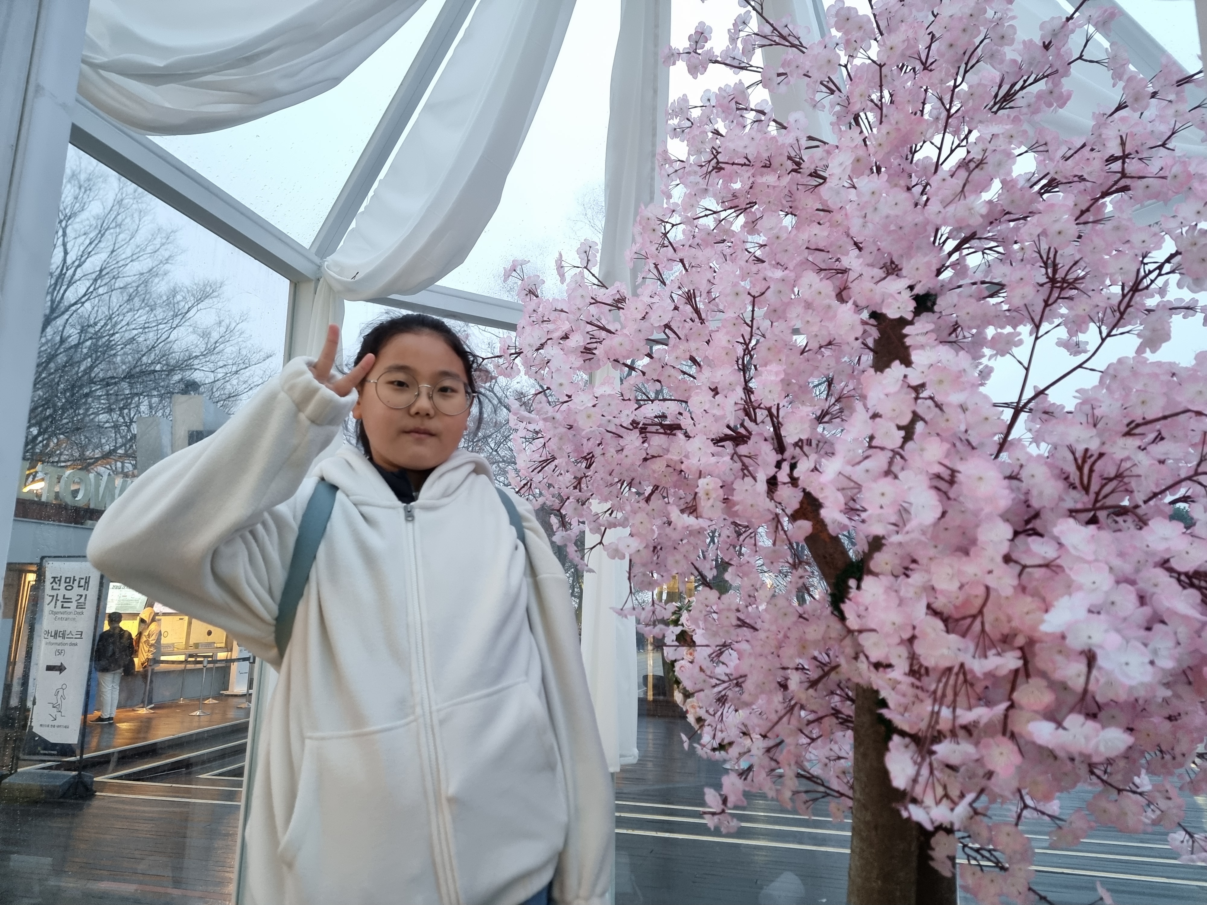 개화산보다 쉬웠다고 해요. 기계에서 만들어지는 솜사탕이 너무 신기하고 재밌었고, 비가 와서 멀리 보이지는 않아서 아쉬웠지만 야경을 본 것도 멋진 일이였다고 합니다. 많이 졌지만 그래도 조금 남은 벚꽃도 보고 떨어지는 꽃잎을 잡았던 것도 기억에 남는 즐거운 일이래요. 지현이도 가족들과도 같이 가자고 오자마자 얘기를 했어요. 조만간 저희도 계획을 세워야 할 것 같습니다.