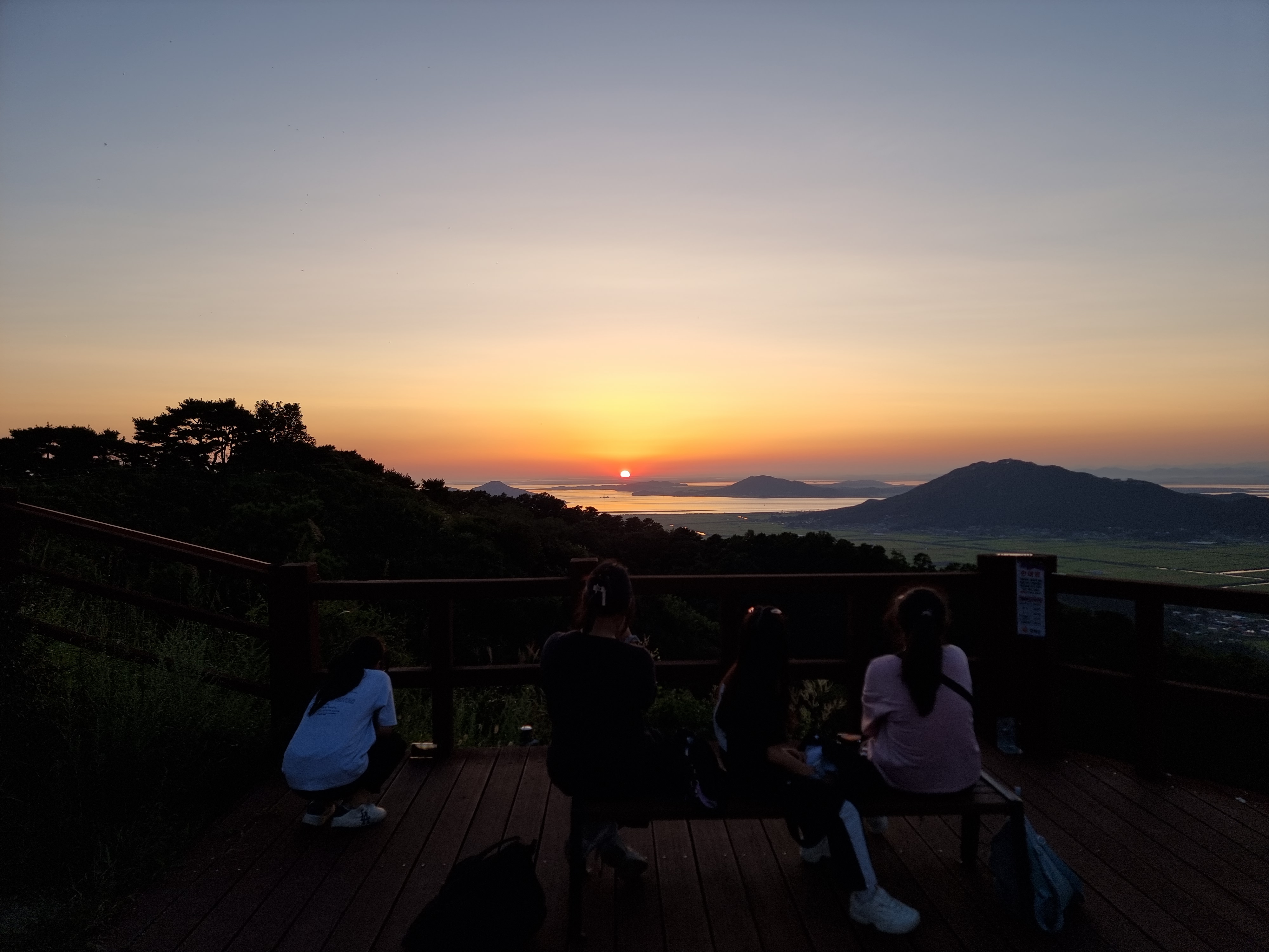 찬란한 일몰 앞에 먹는 치킨의 맛은 감히 표현할 수 없습니다.