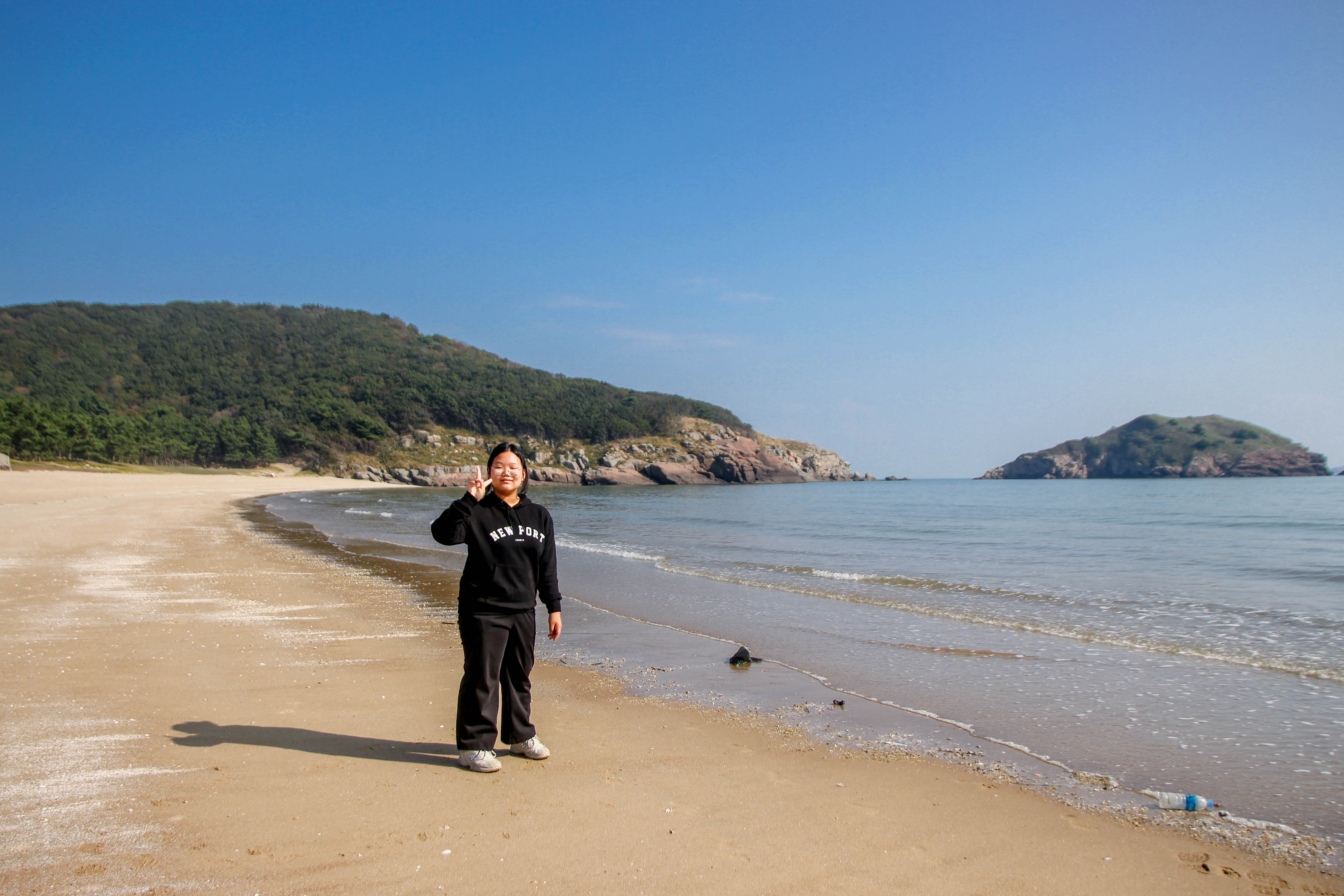 넓은 백사장에 우리 밖에 없습니다.