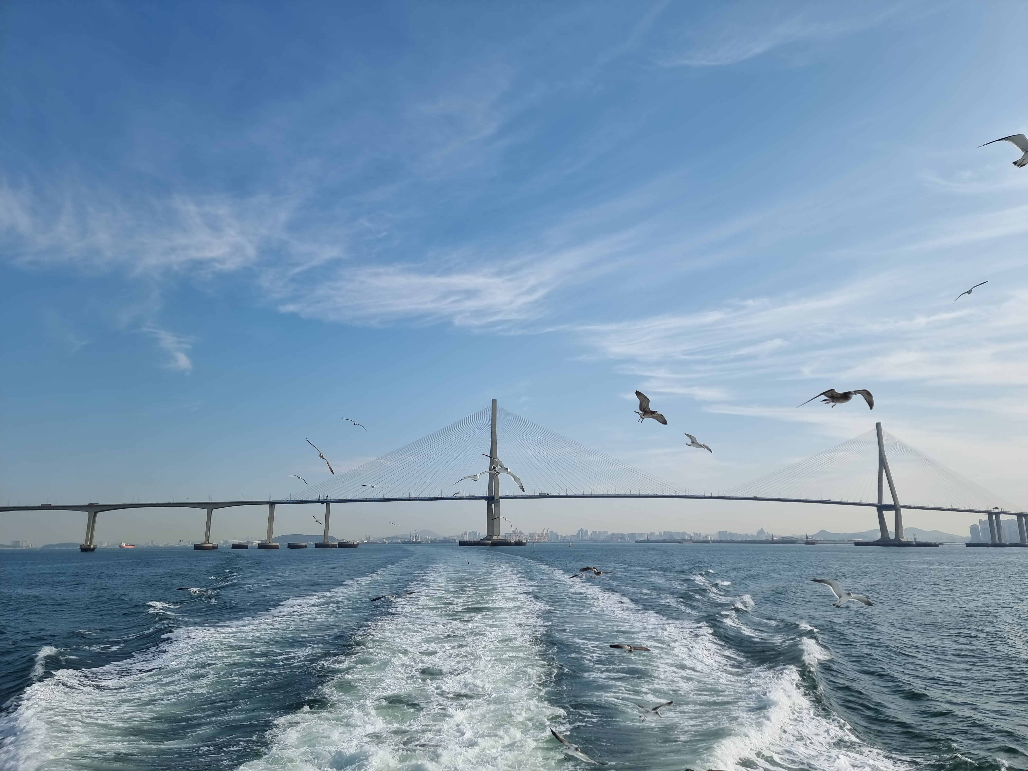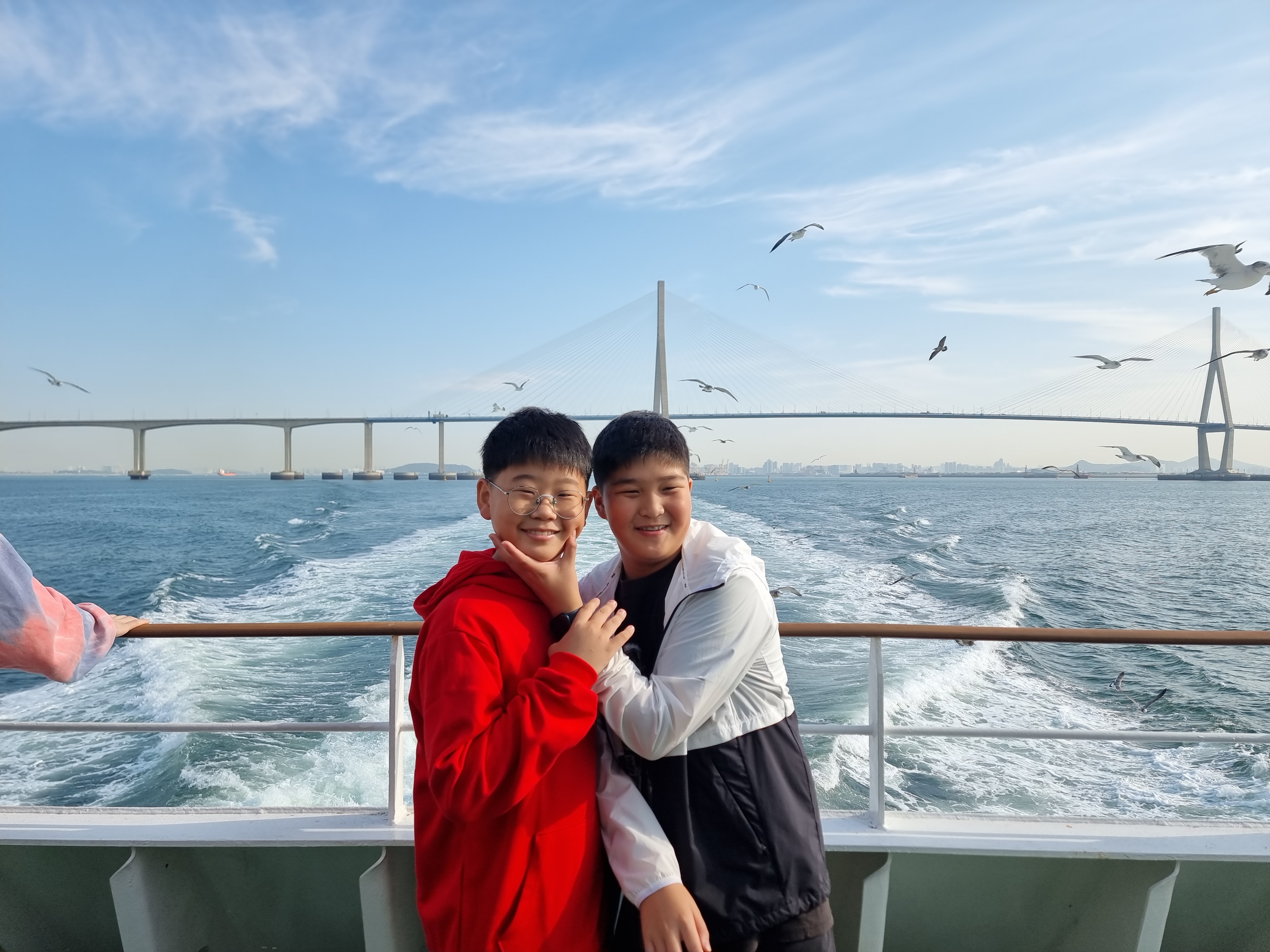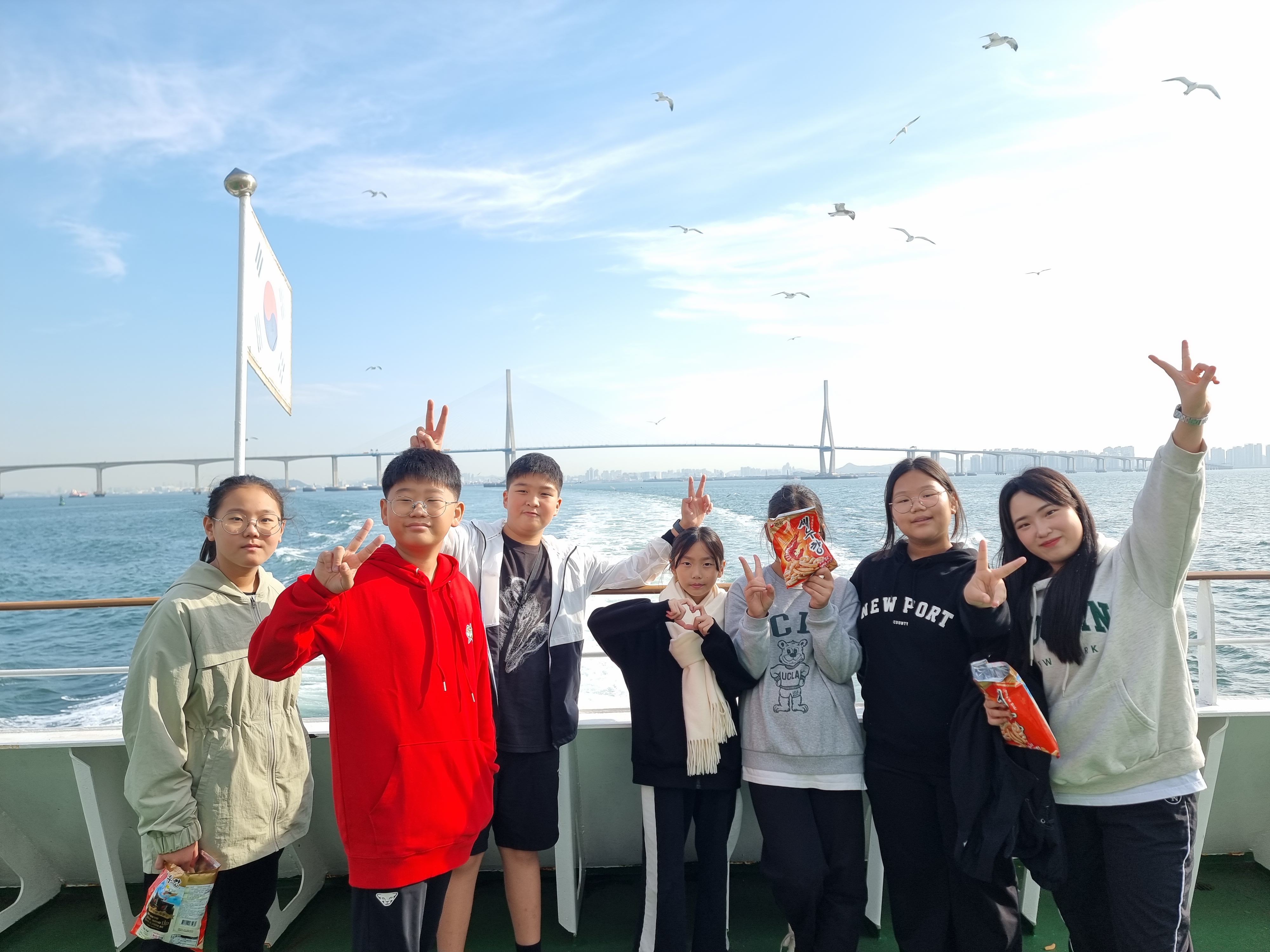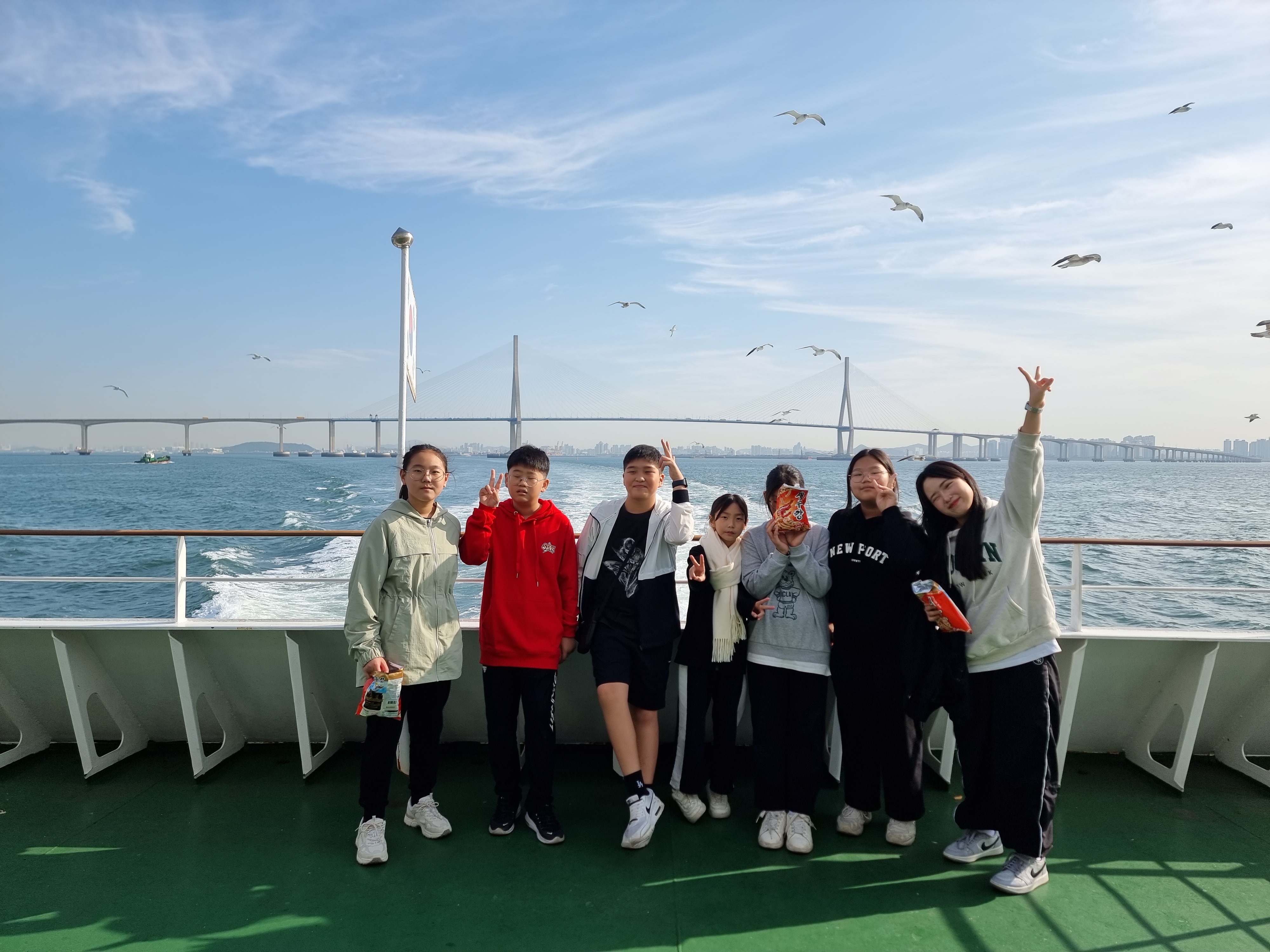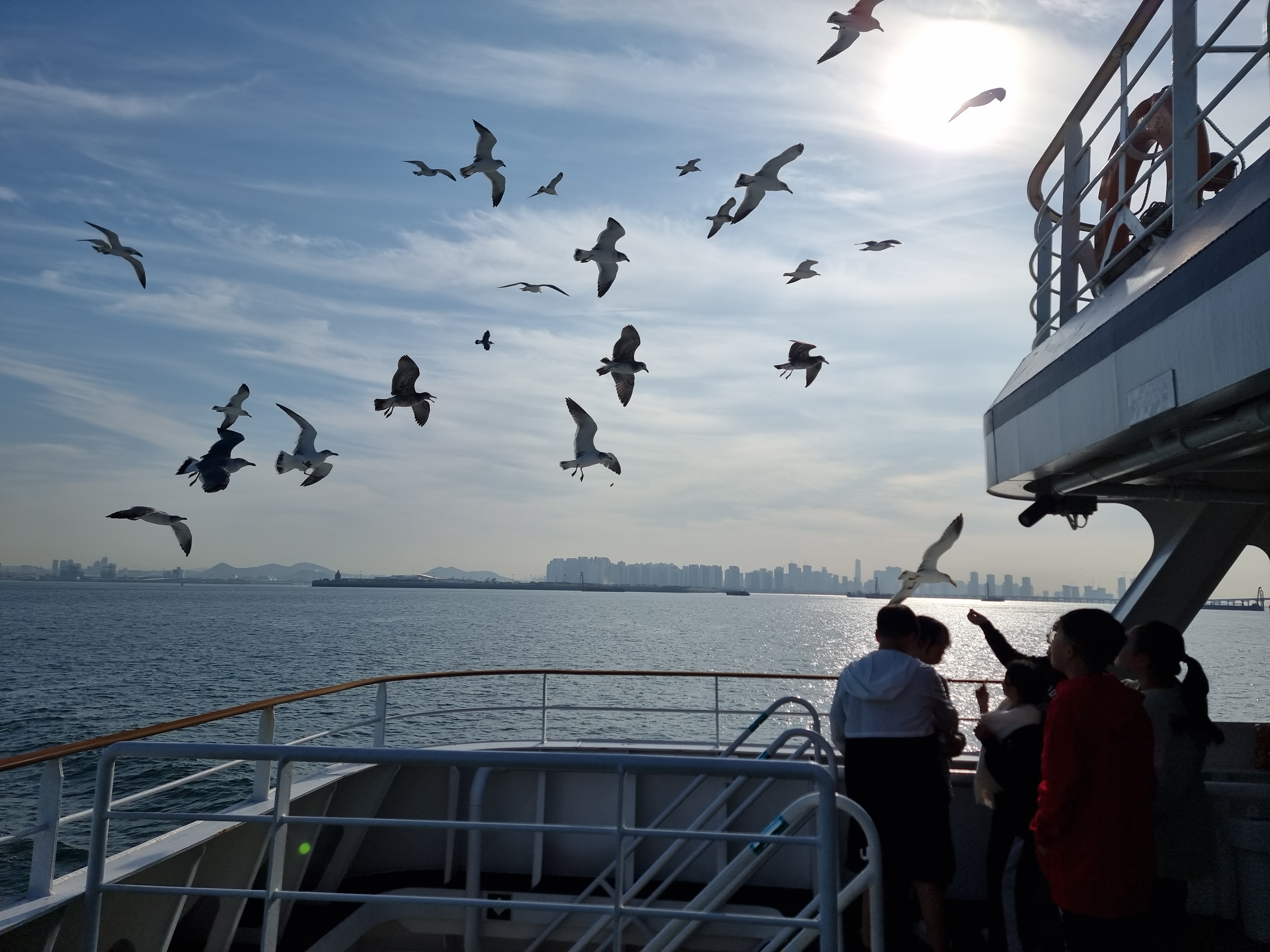 배를 타면 빼놓을 수 없는 건 갈매기에 새우깡을 주는 겁니다.