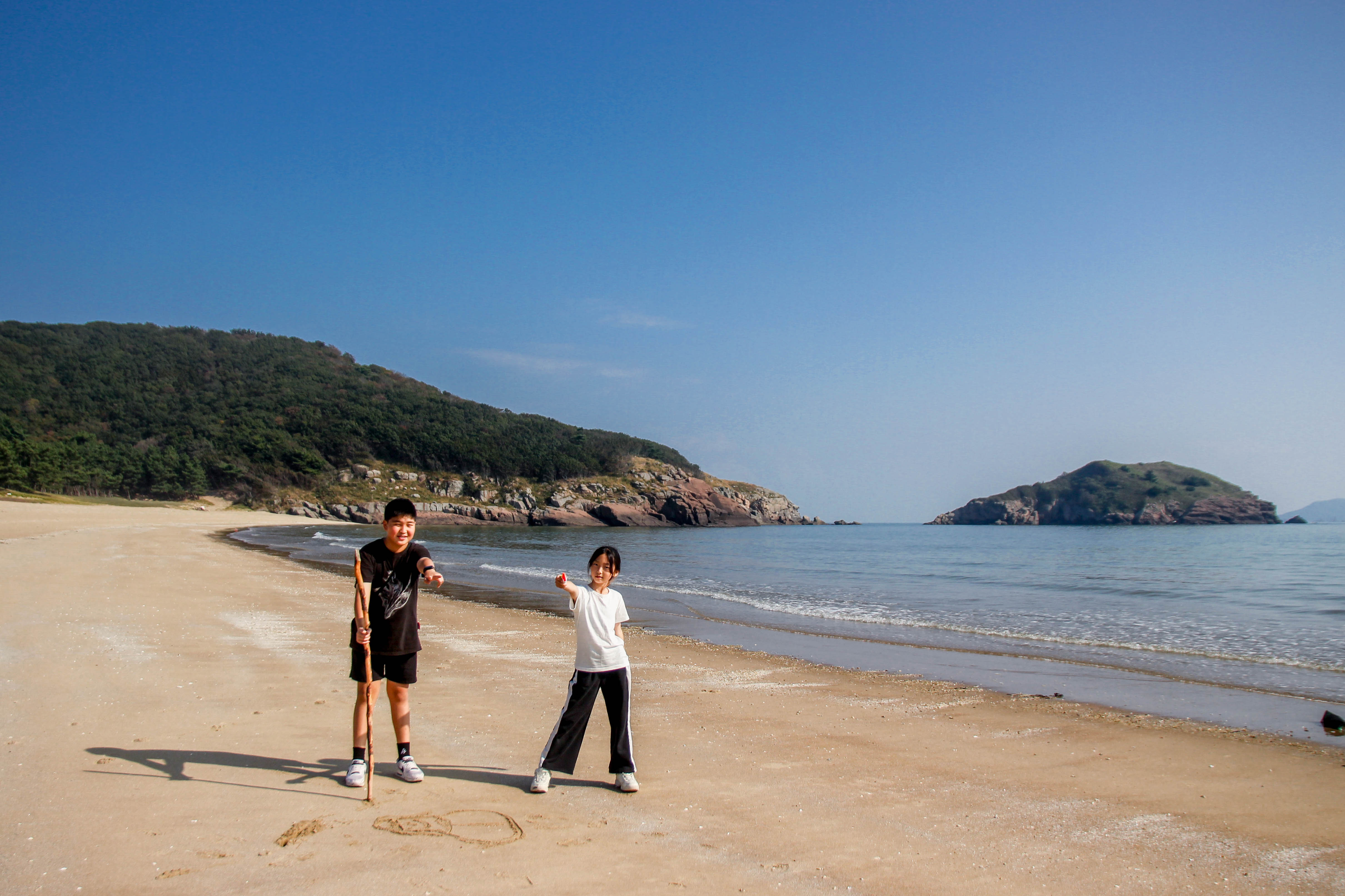 백사장에 그림도 그리고 낙서도 했습니다.