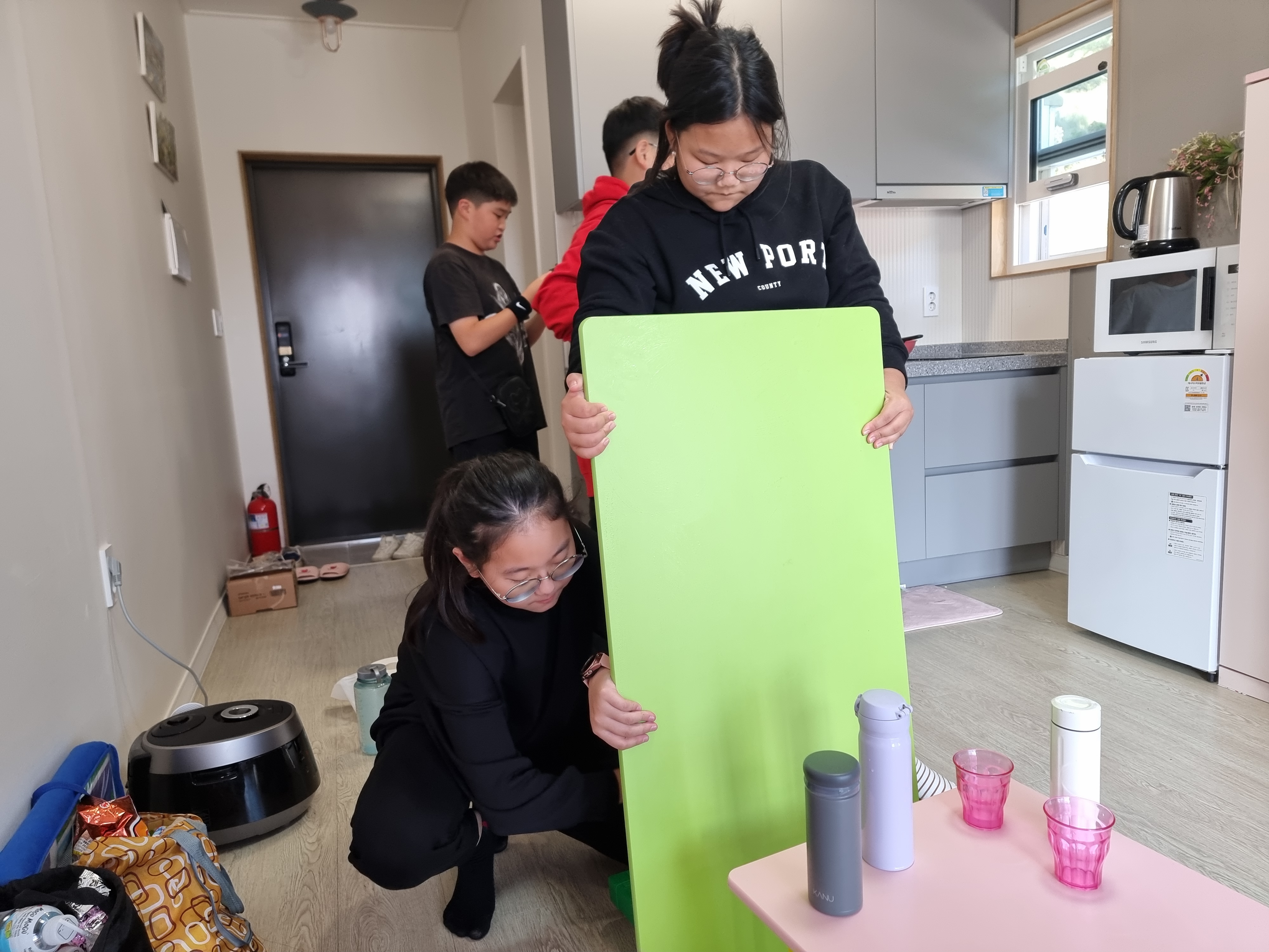그제서야 아이들과 짐을 정리했습니다.